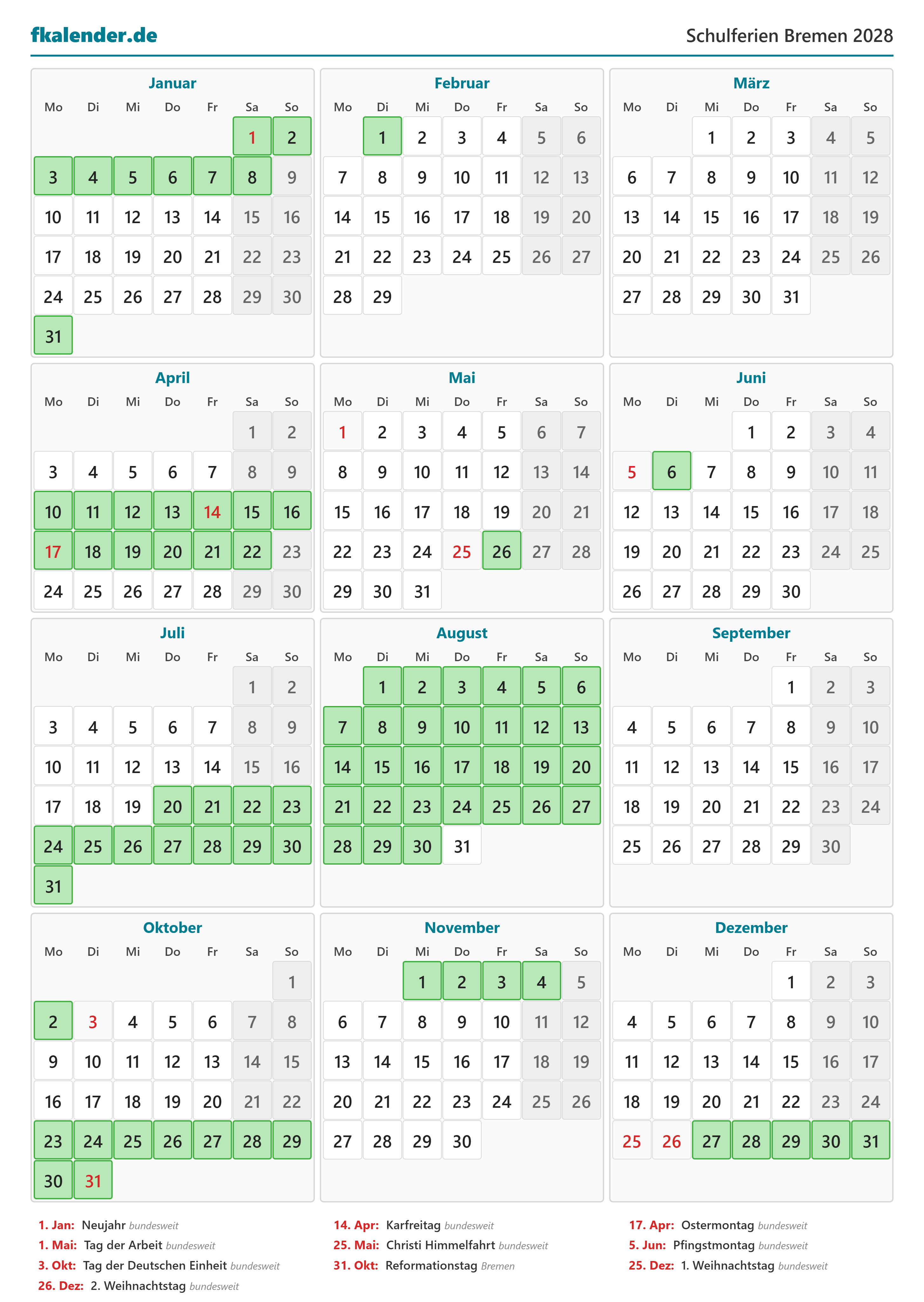 Teilen Sie Ihre Meinung oder Fragen zum Ferienkalender Bremen 2028