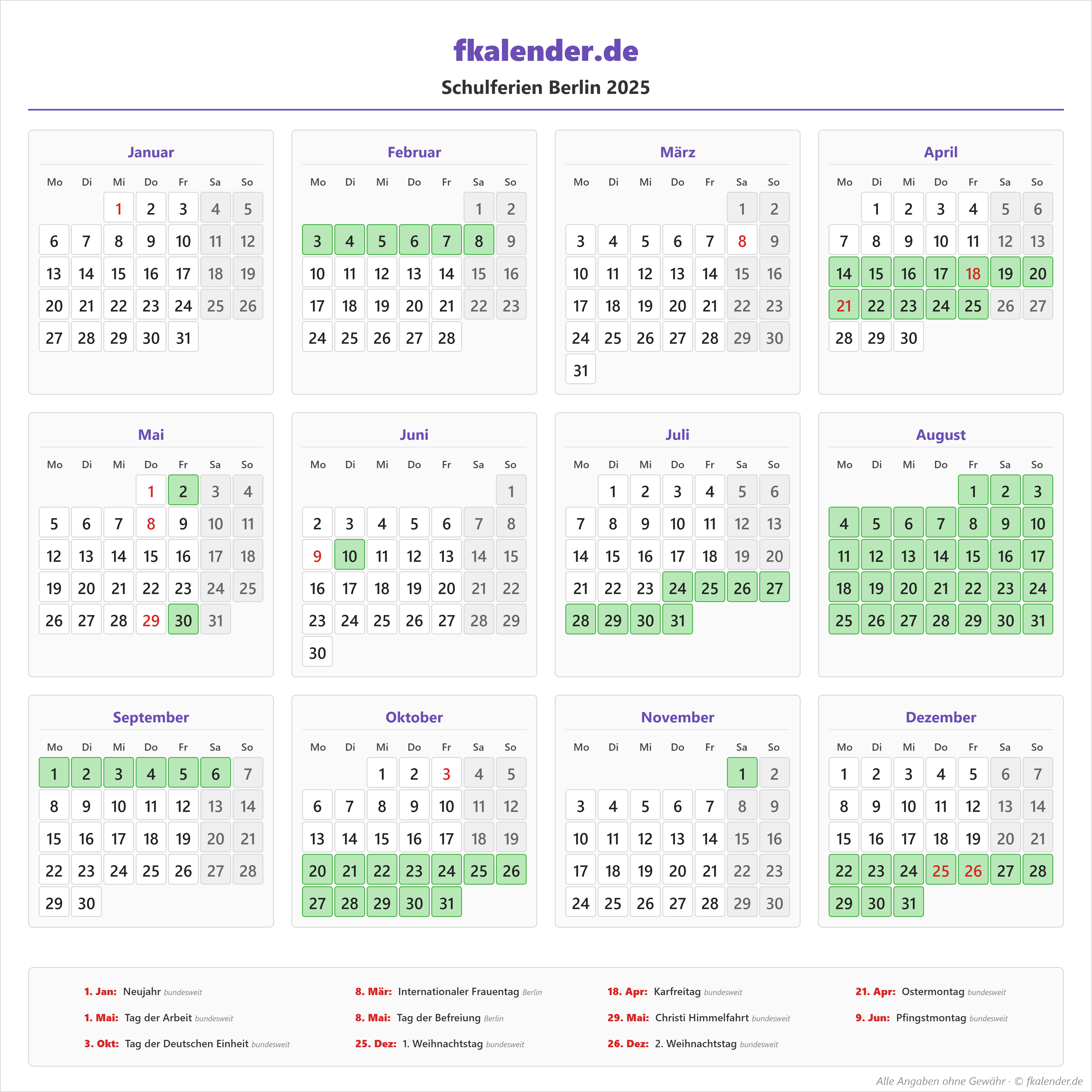- Osterferien: 14.04.2025 - 25.04.2025+02.05.2025+30.05.2025