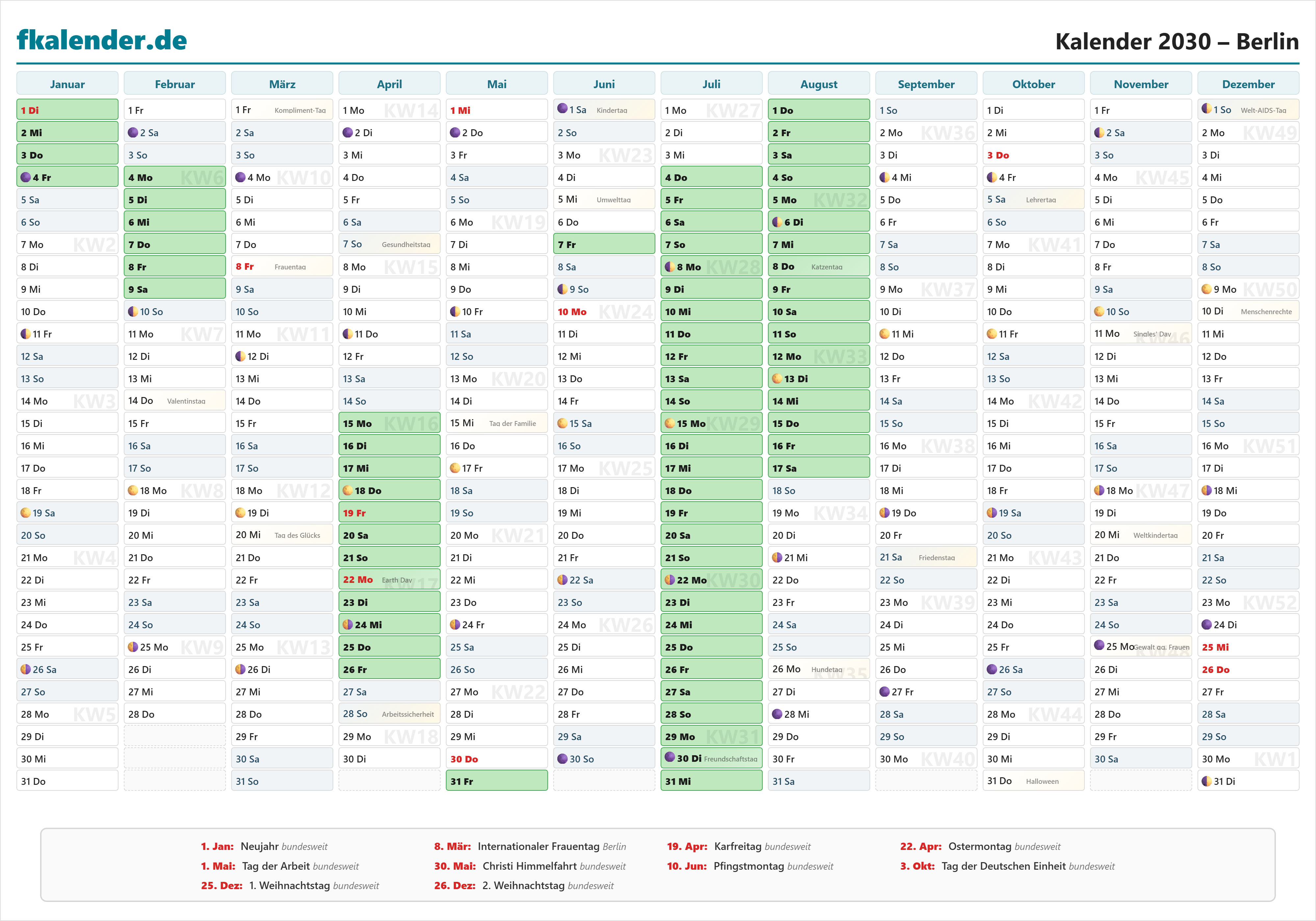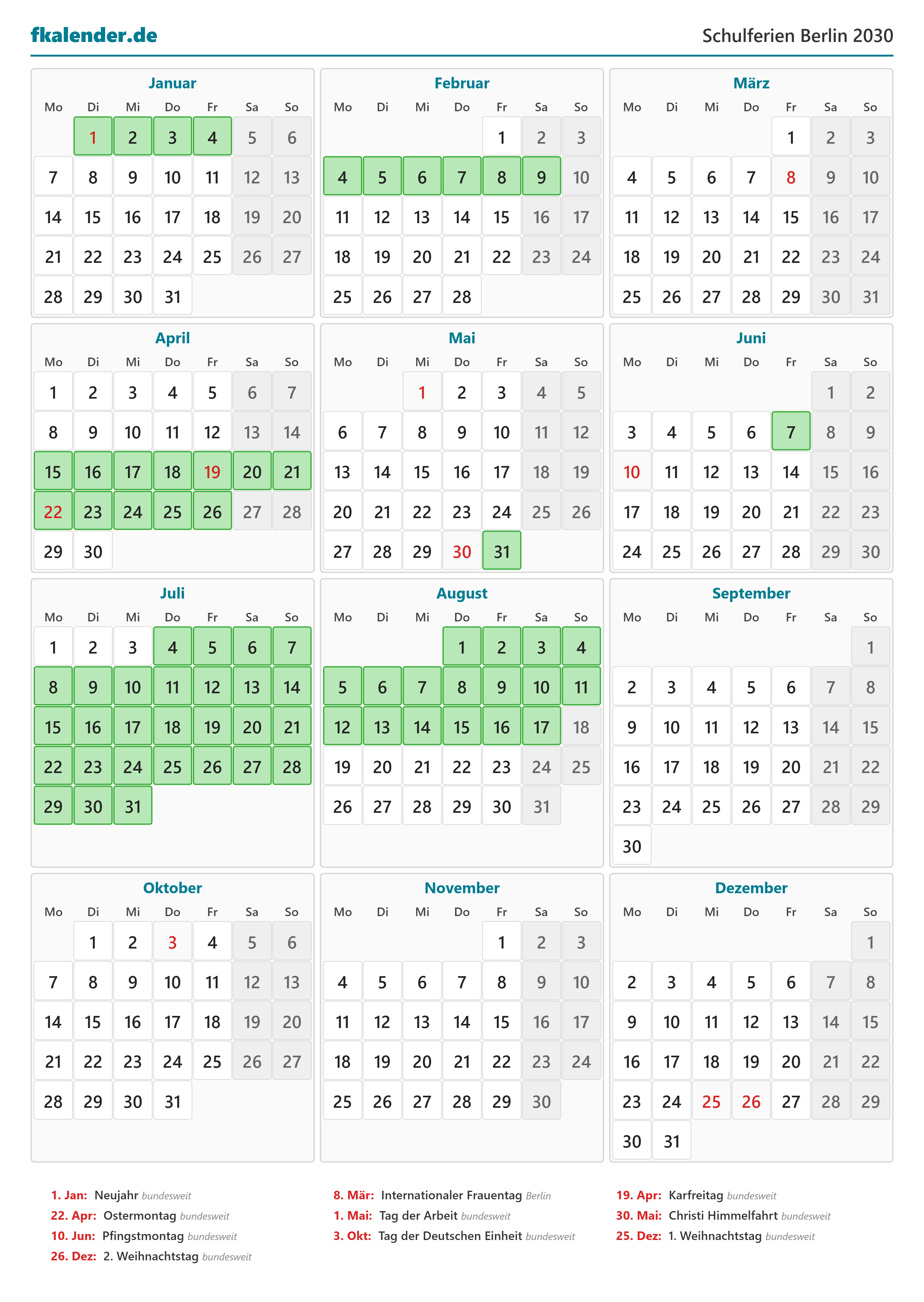 - Osterferien: 15.04.2030 - 26.04.2030+31.05.2030