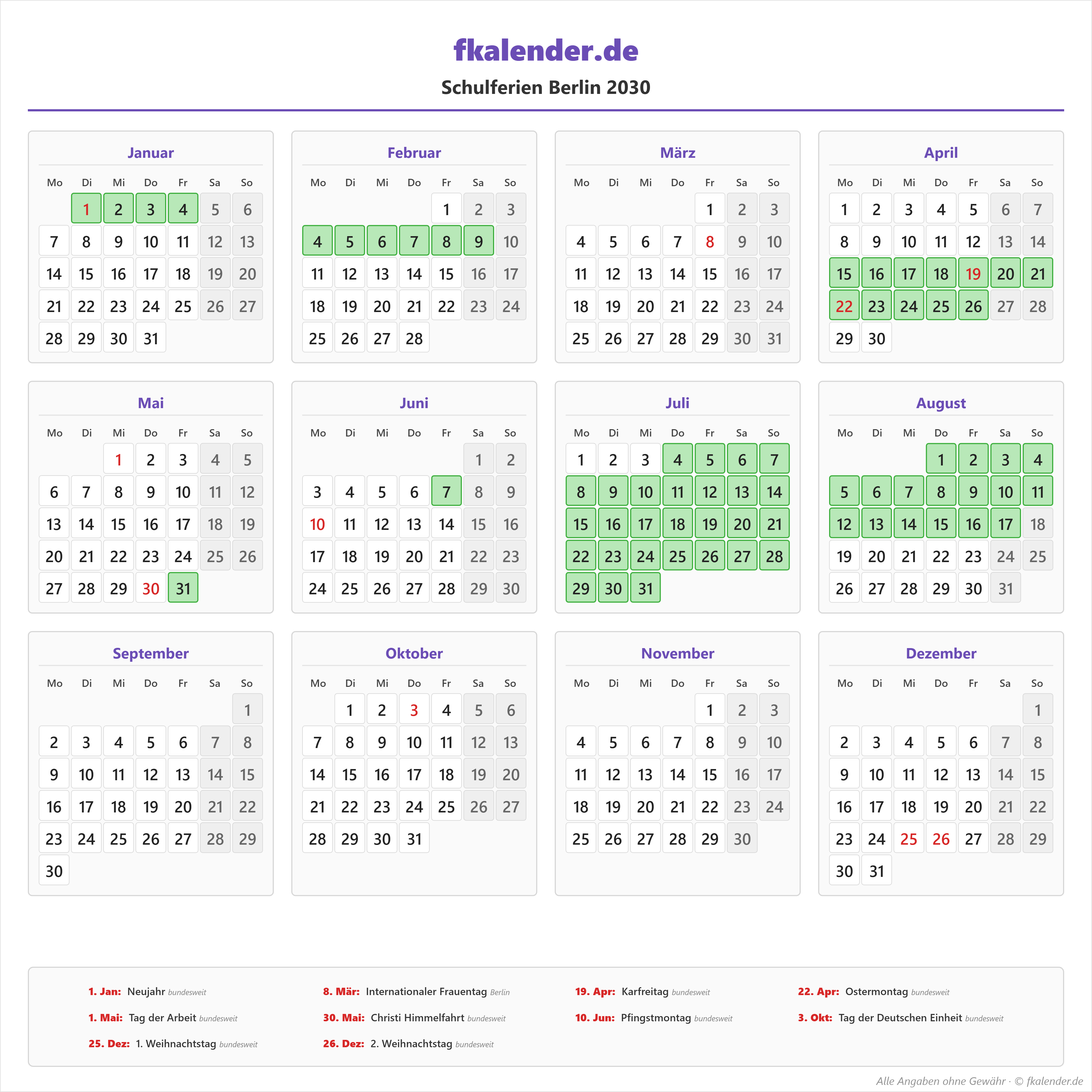 - Sommerferien: 04.07.2030 - 17.08.2030