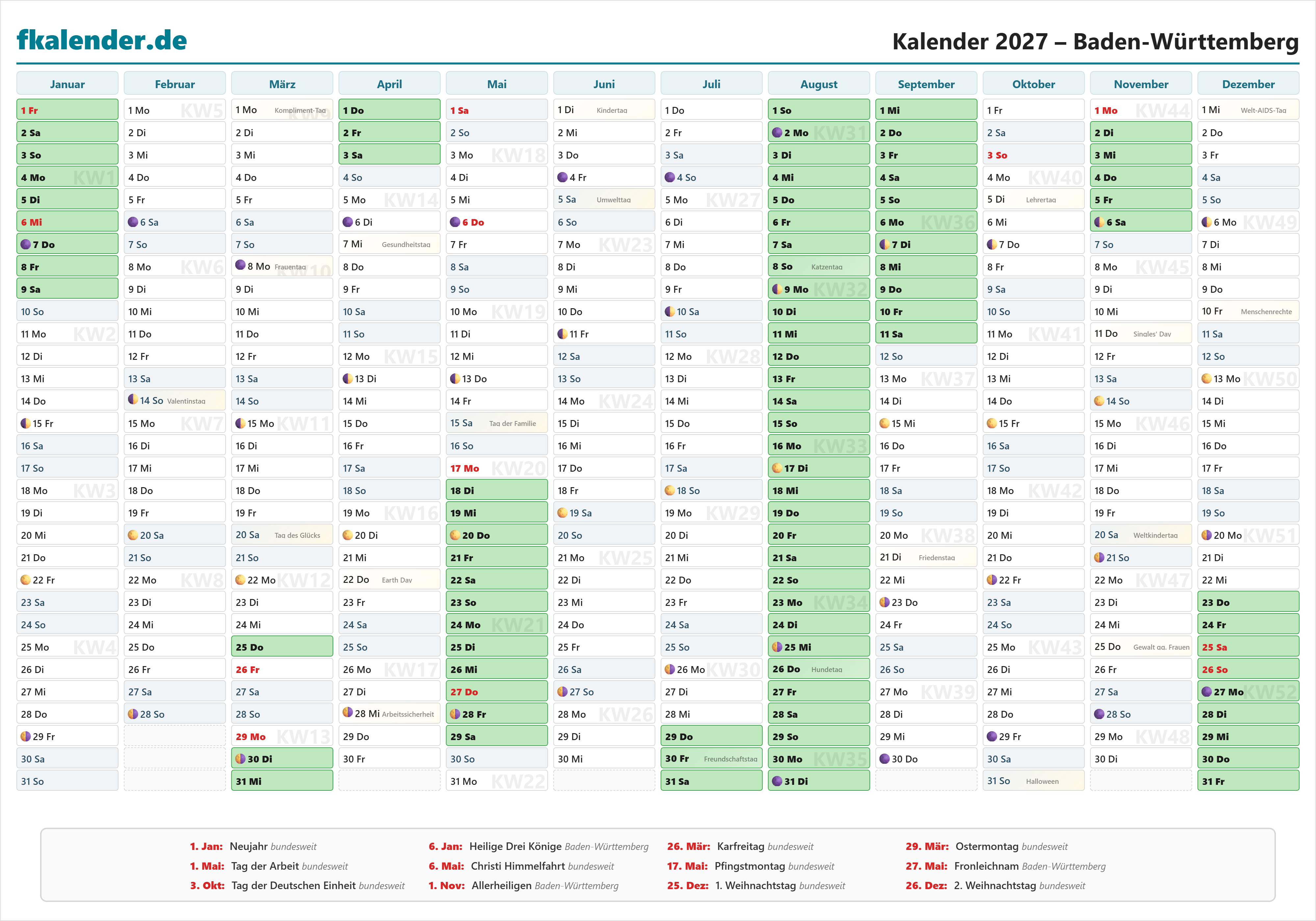 🎉 Feiertage in Baden-Württemberg 2027