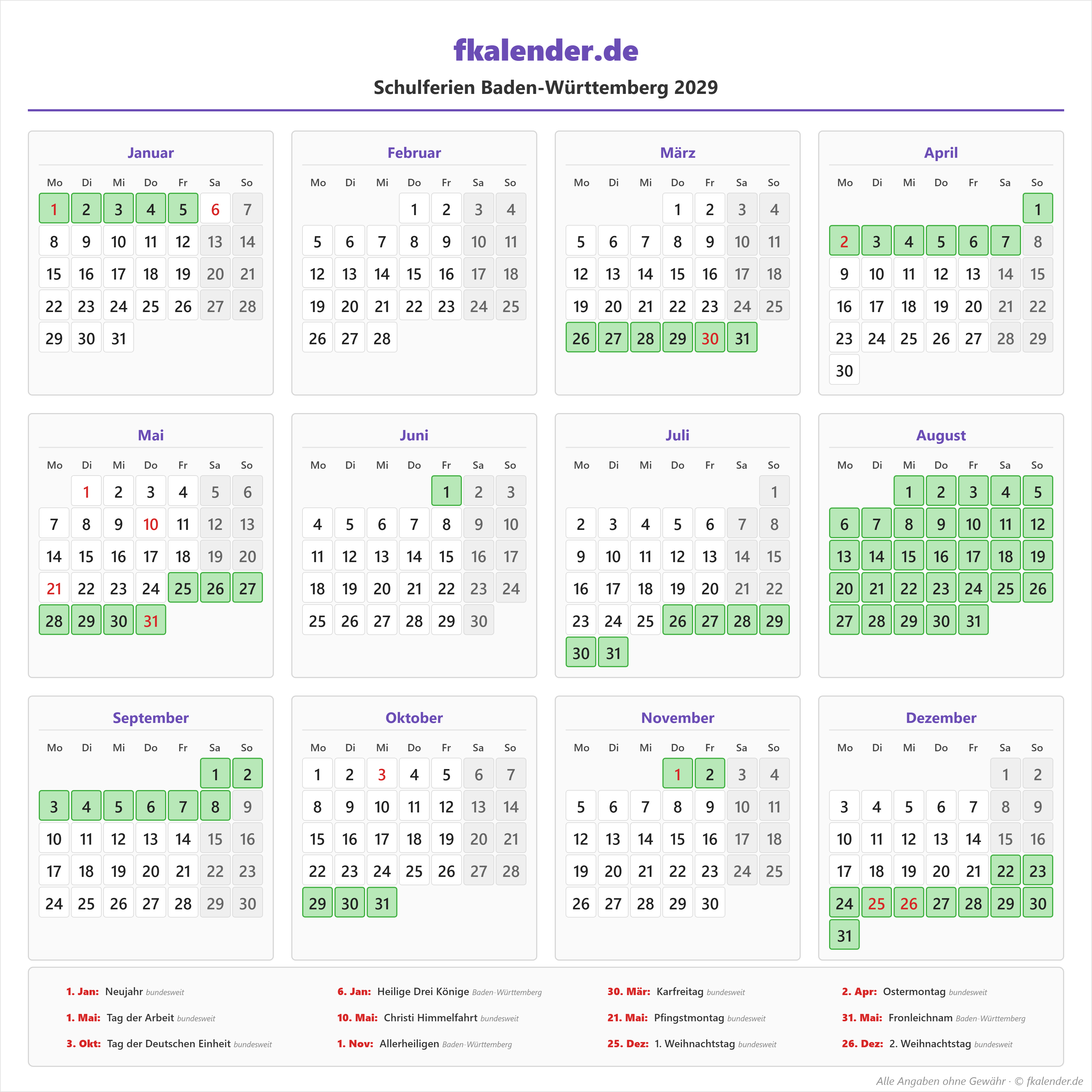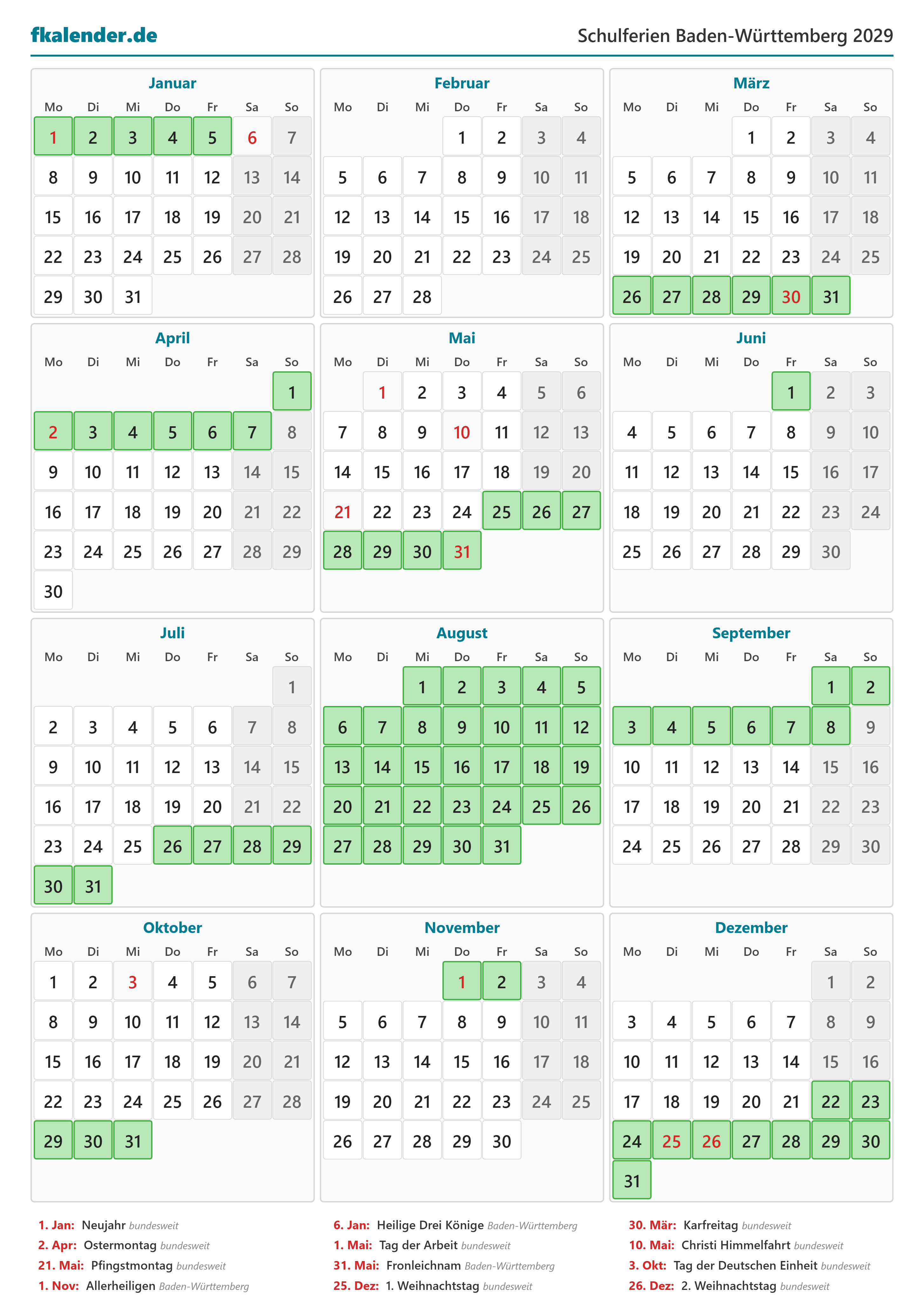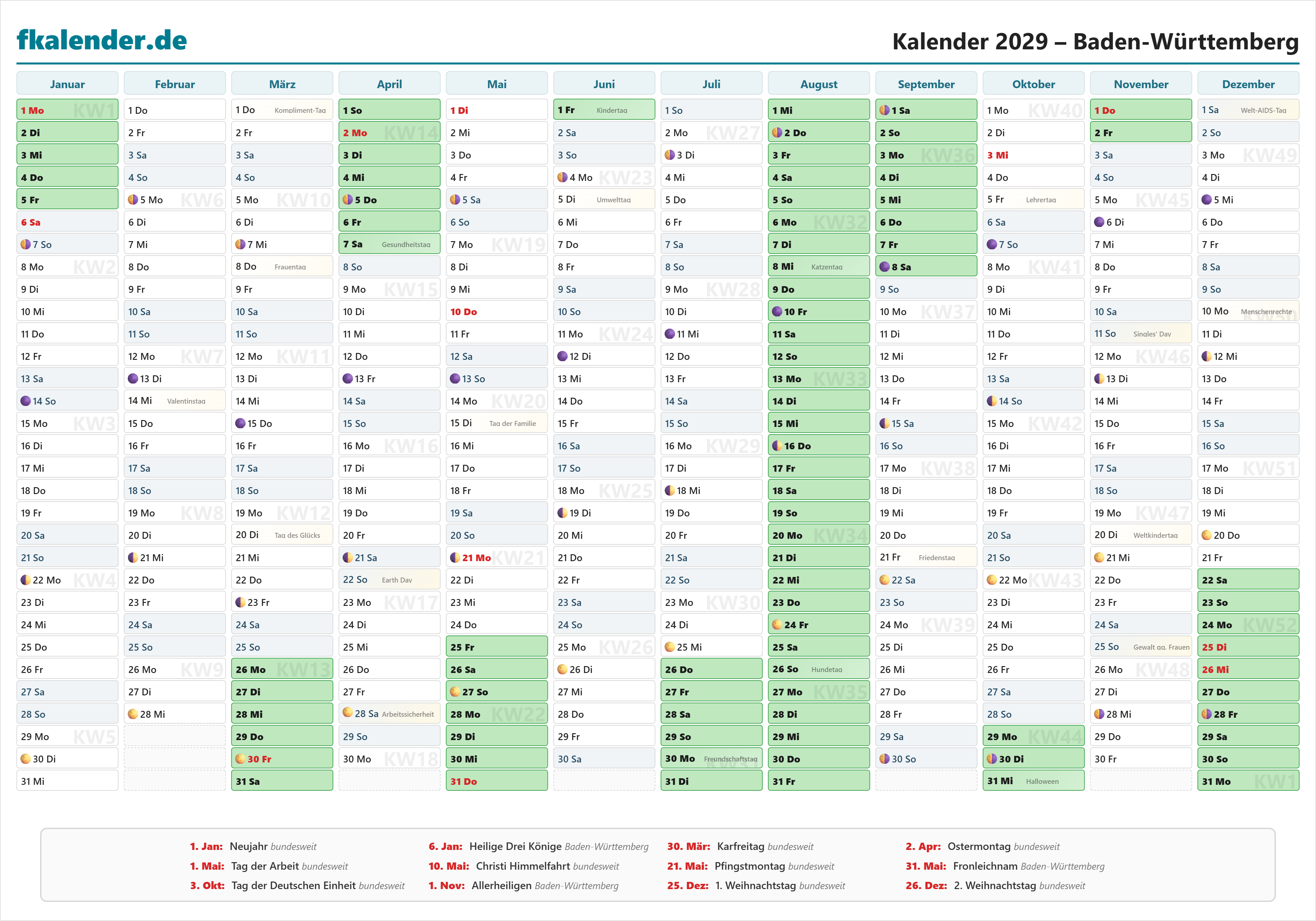 🎉 Feiertage in Baden-Württemberg 2029