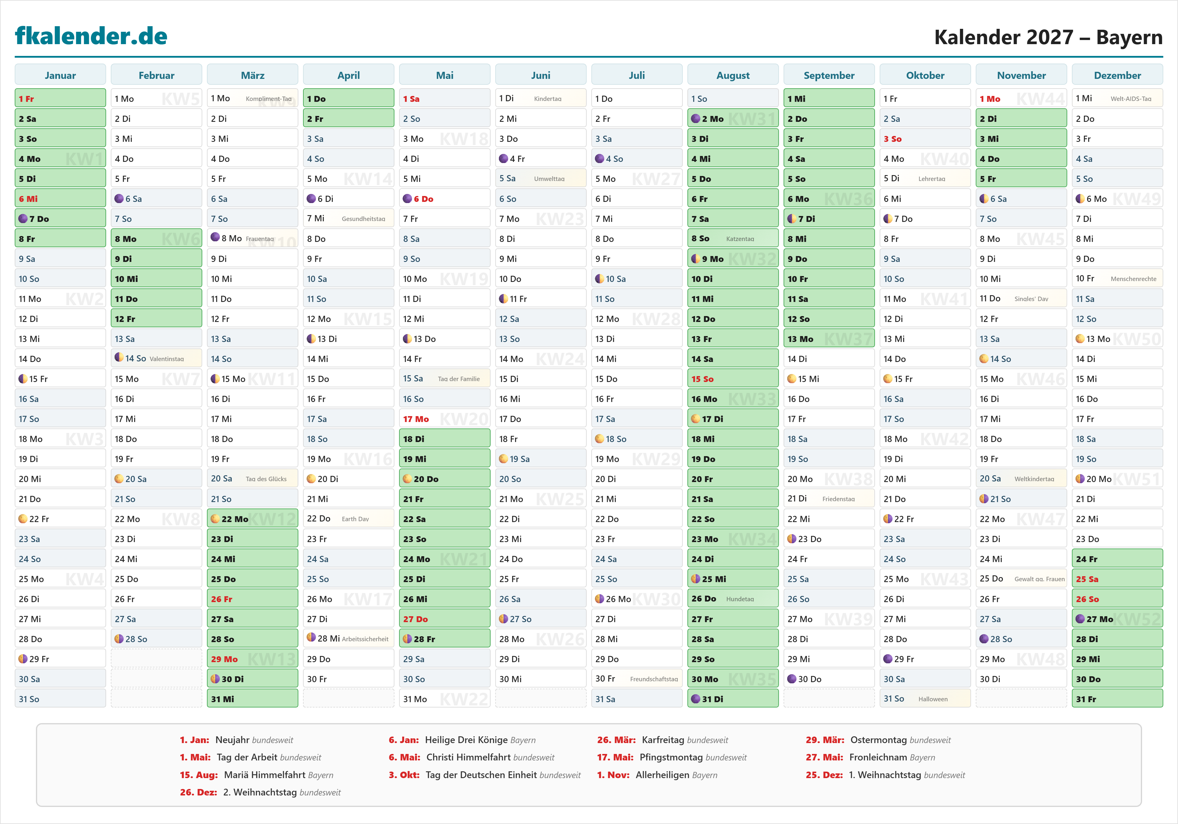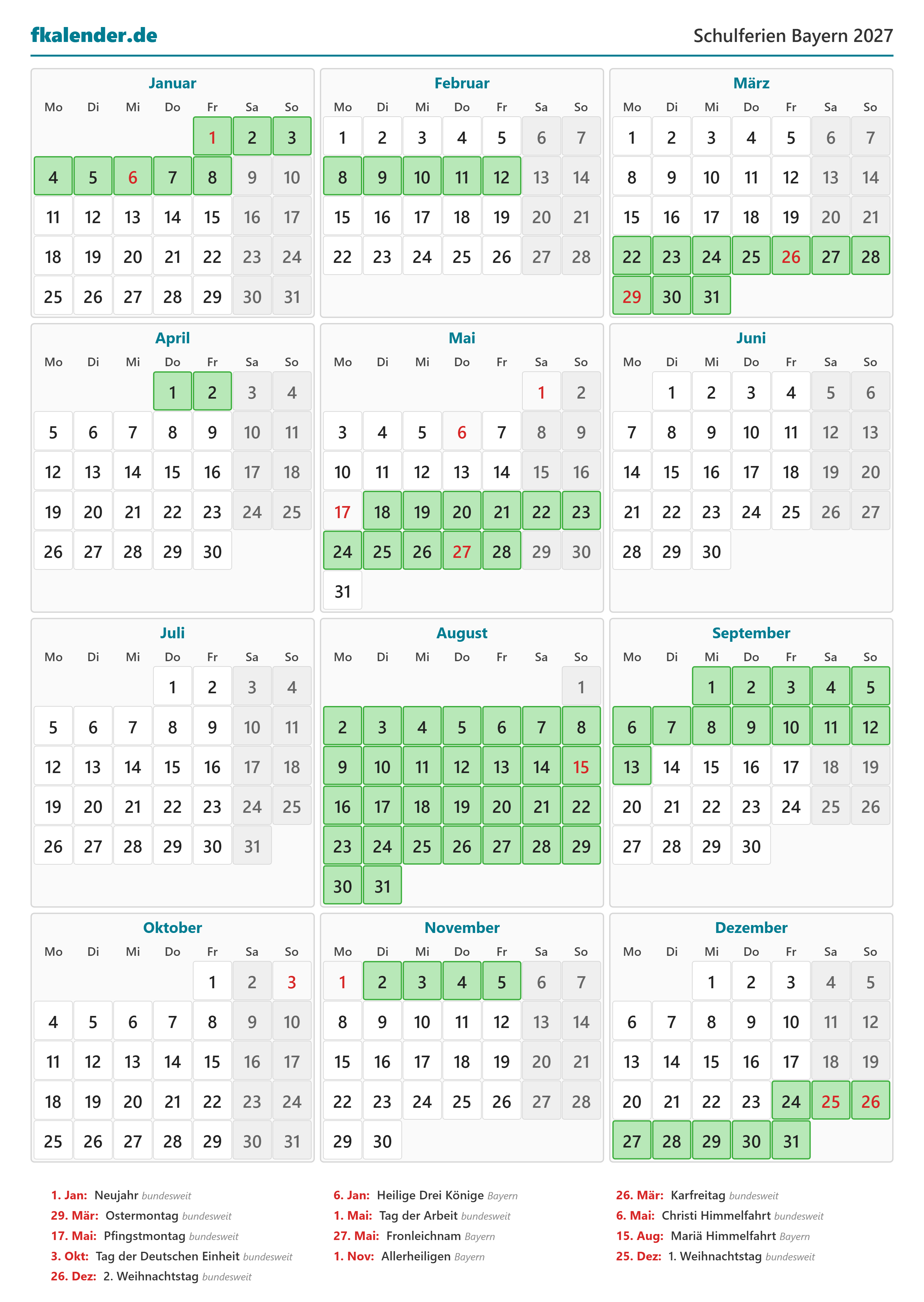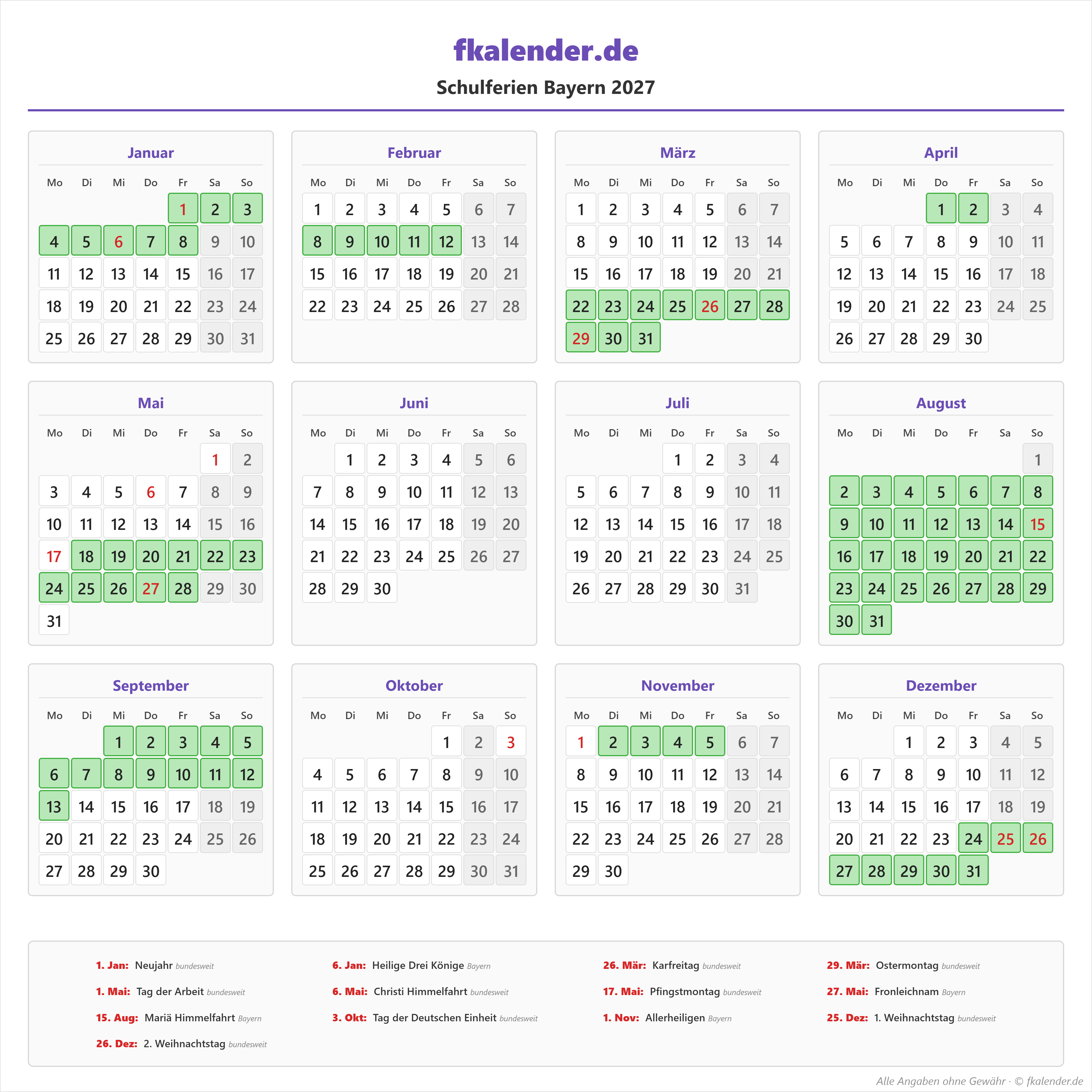 - Herbstferien: 02.11.2027 - 05.11.2027