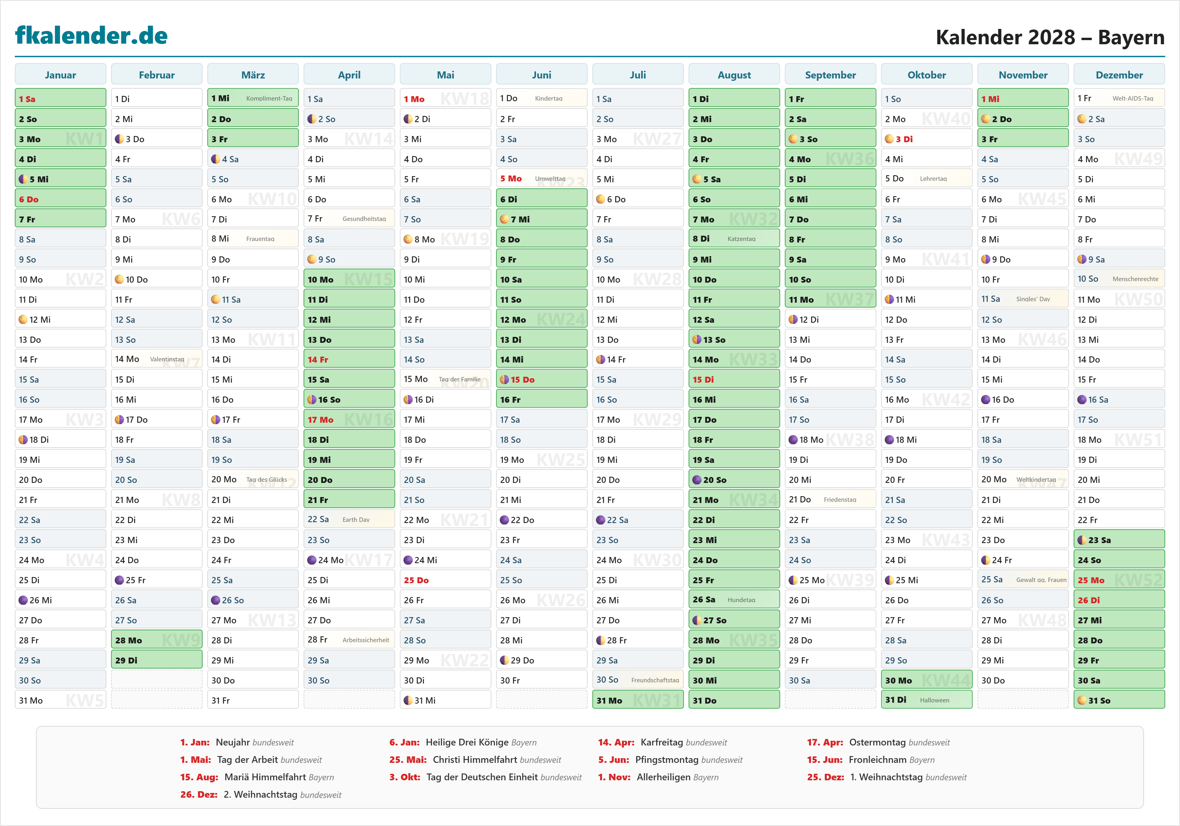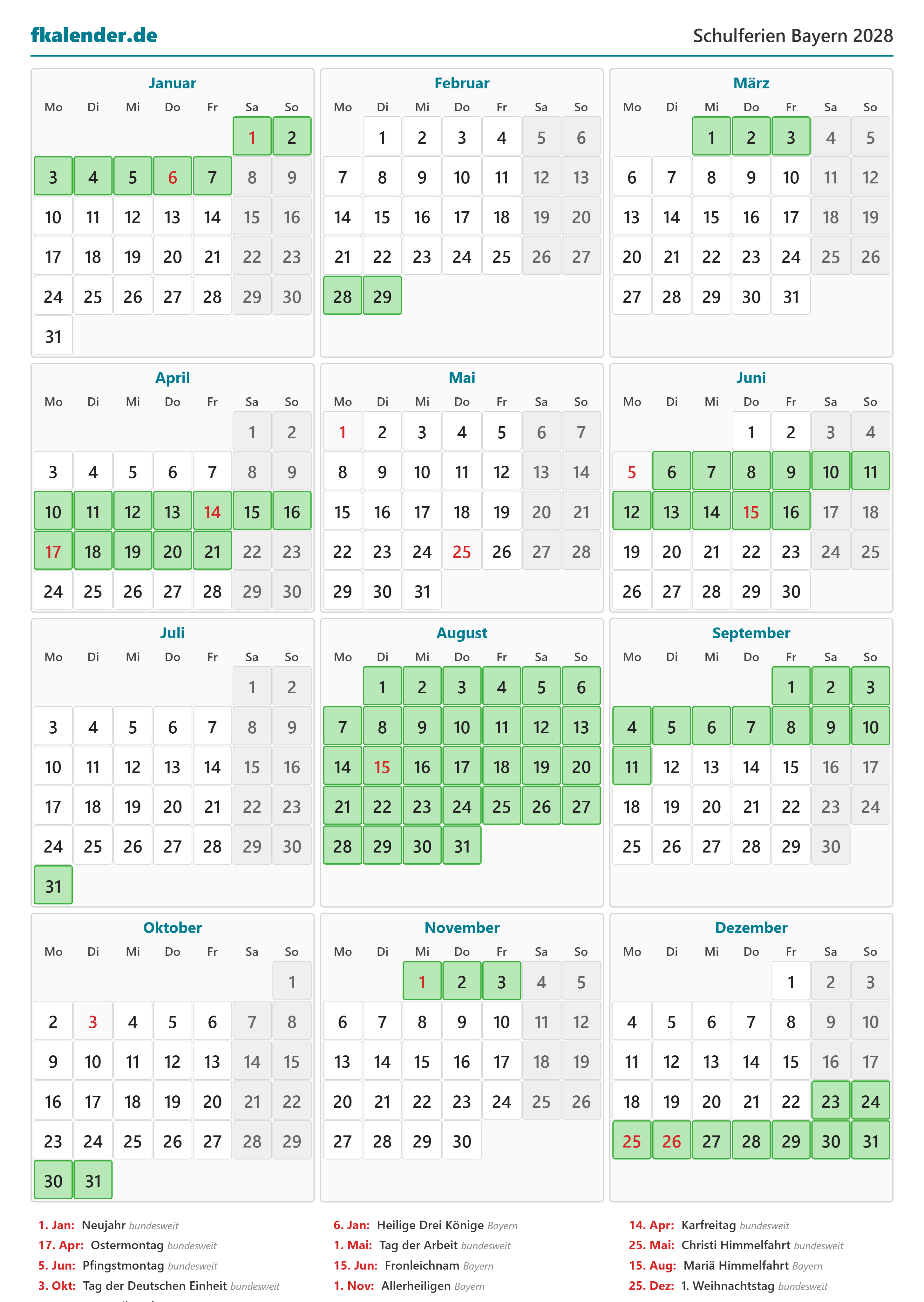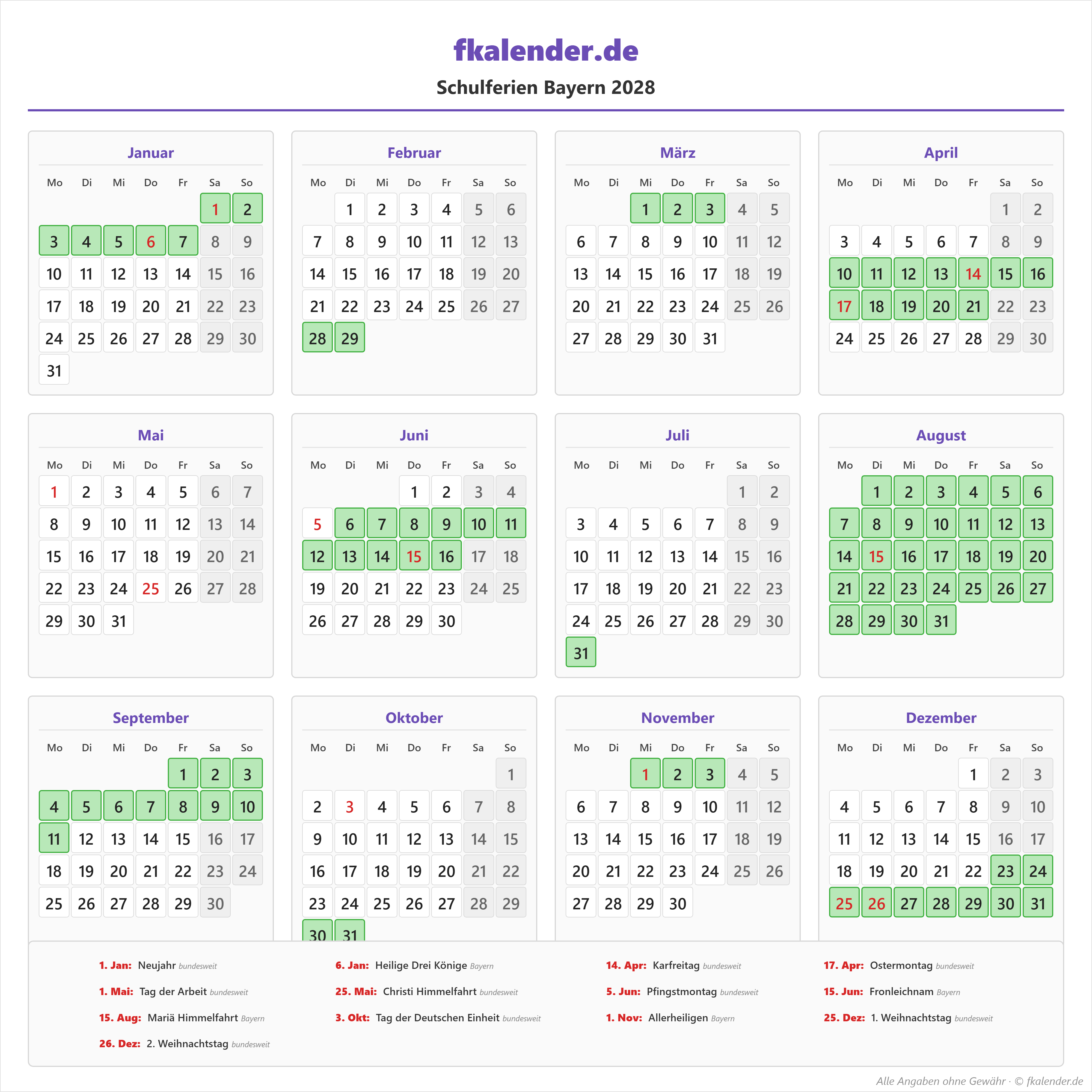 - Sommerferien: 31.07.2028 - 11.09.2028