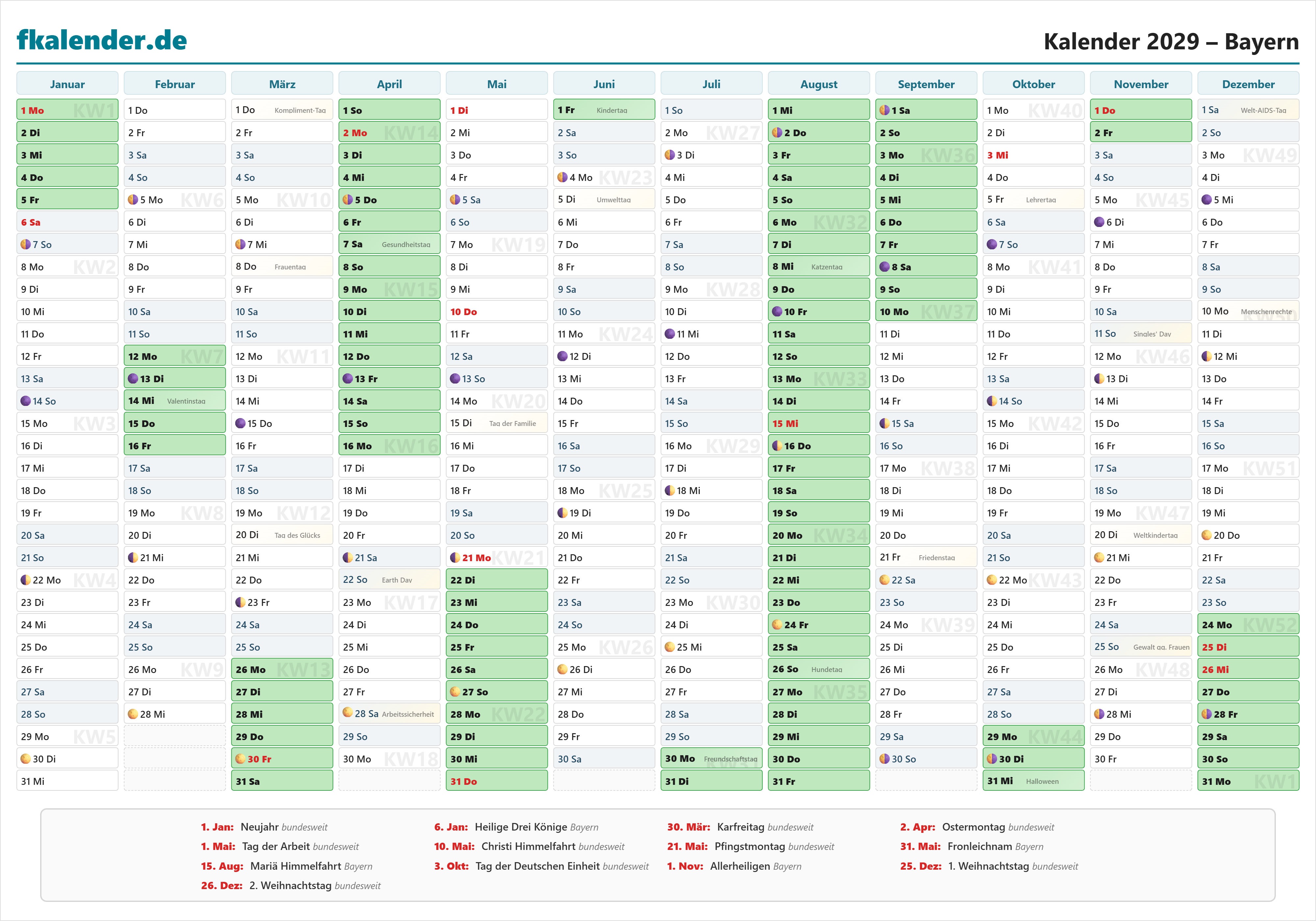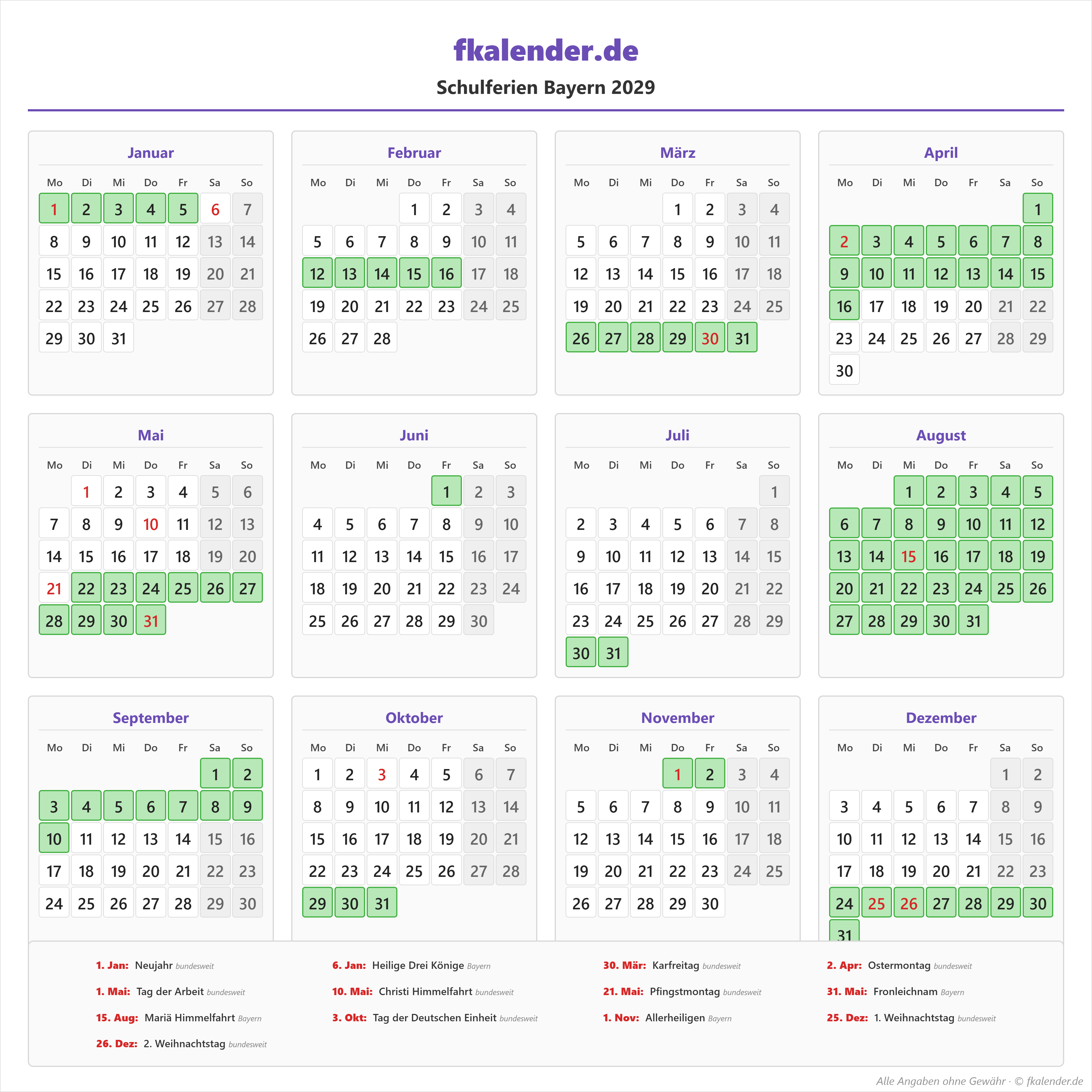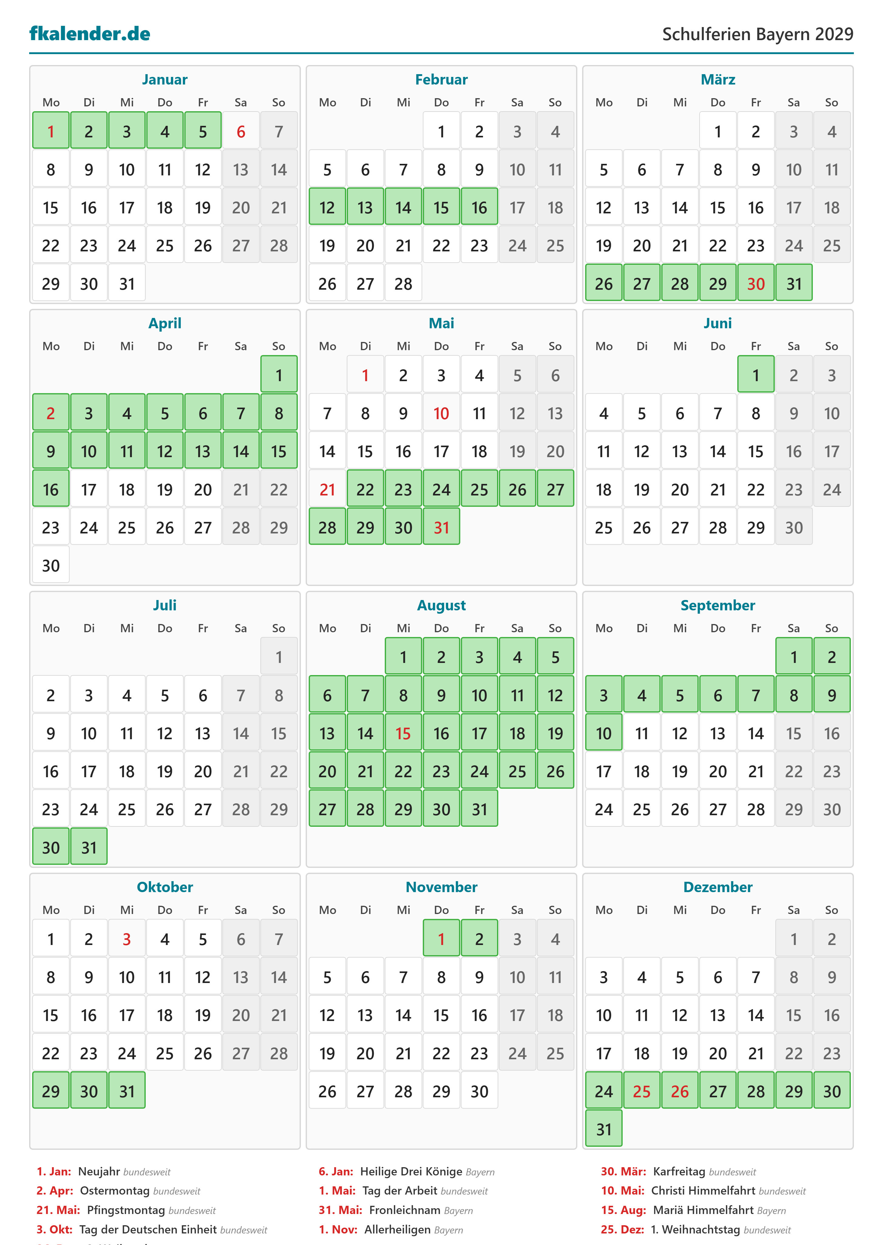 - Herbstferien: 29.10.2029 - 02.11.2029