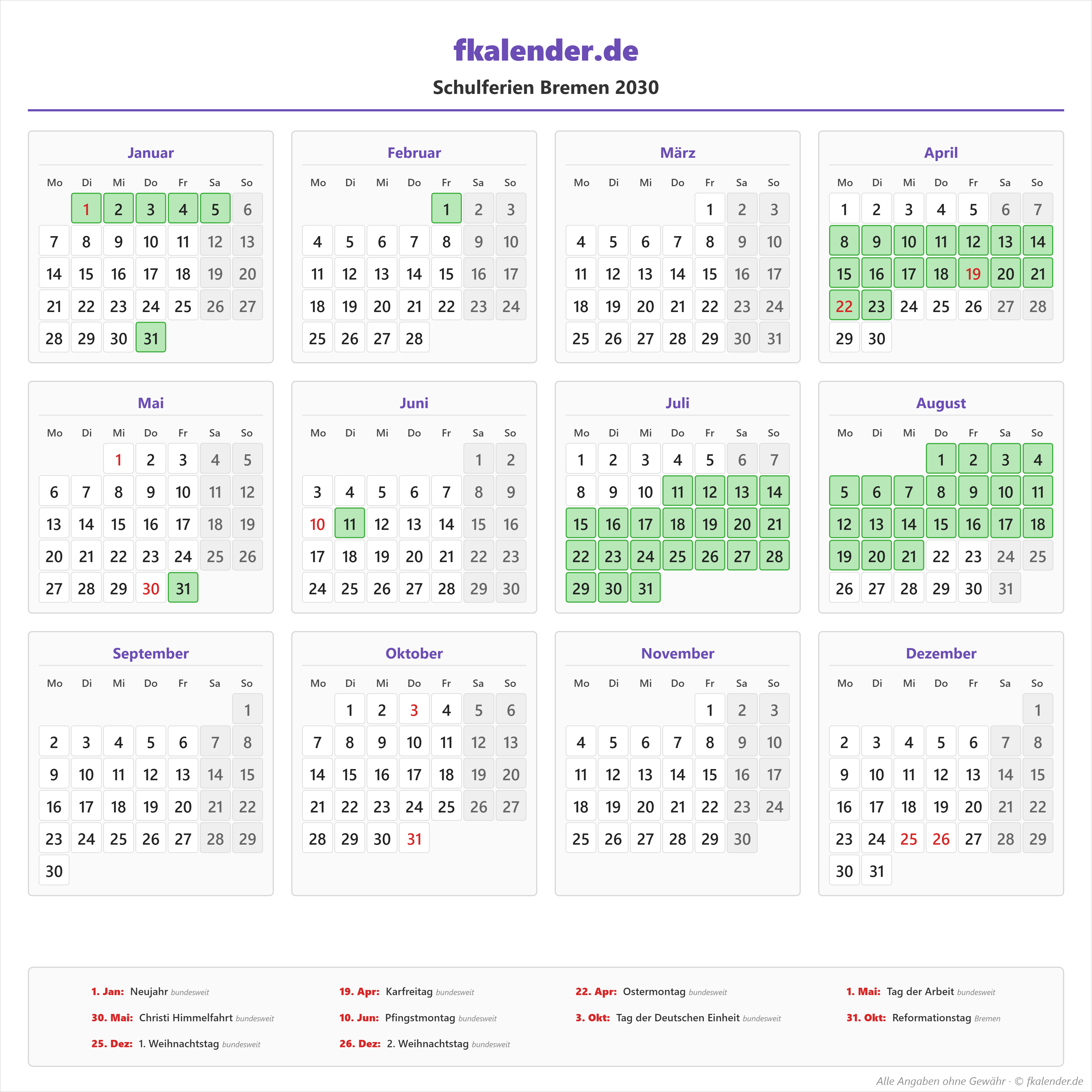 - Sommerferien: 11.07.2030 - 21.08.2030
