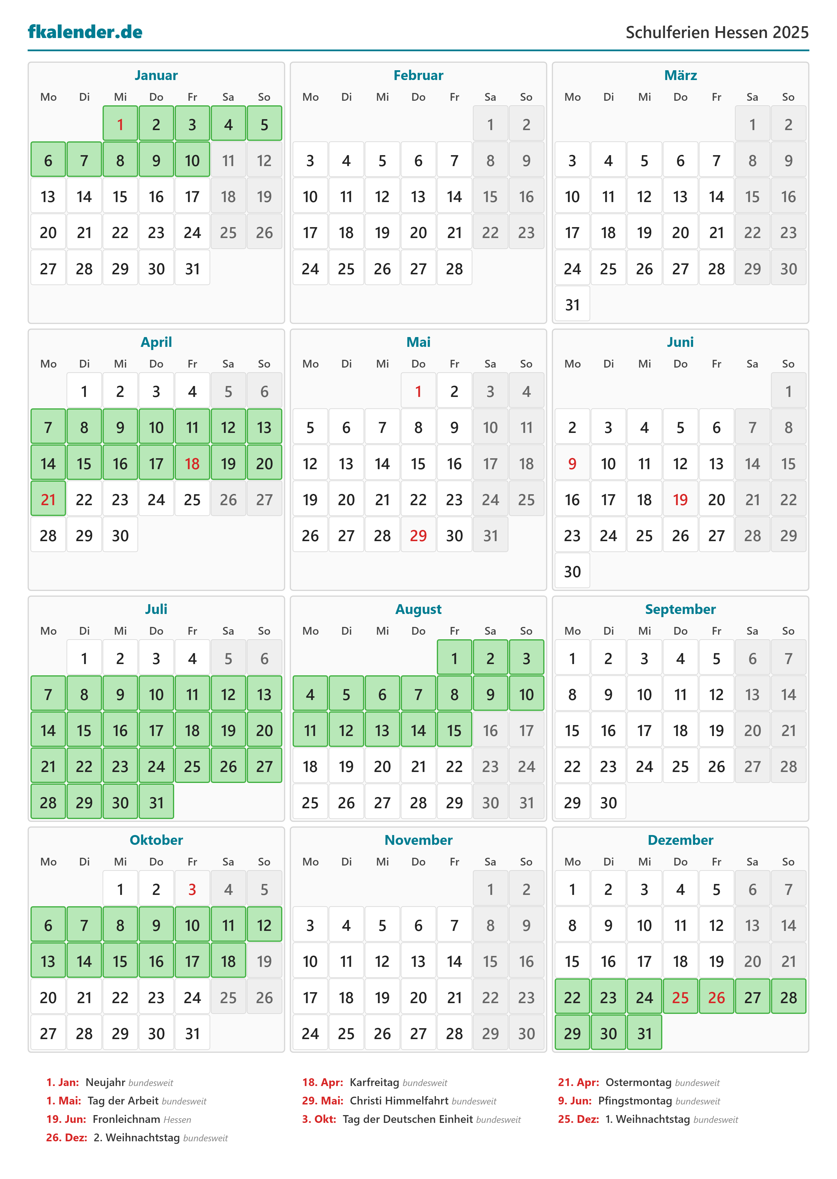 - Herbstferien: 06.10.2025 - 18.10.2025