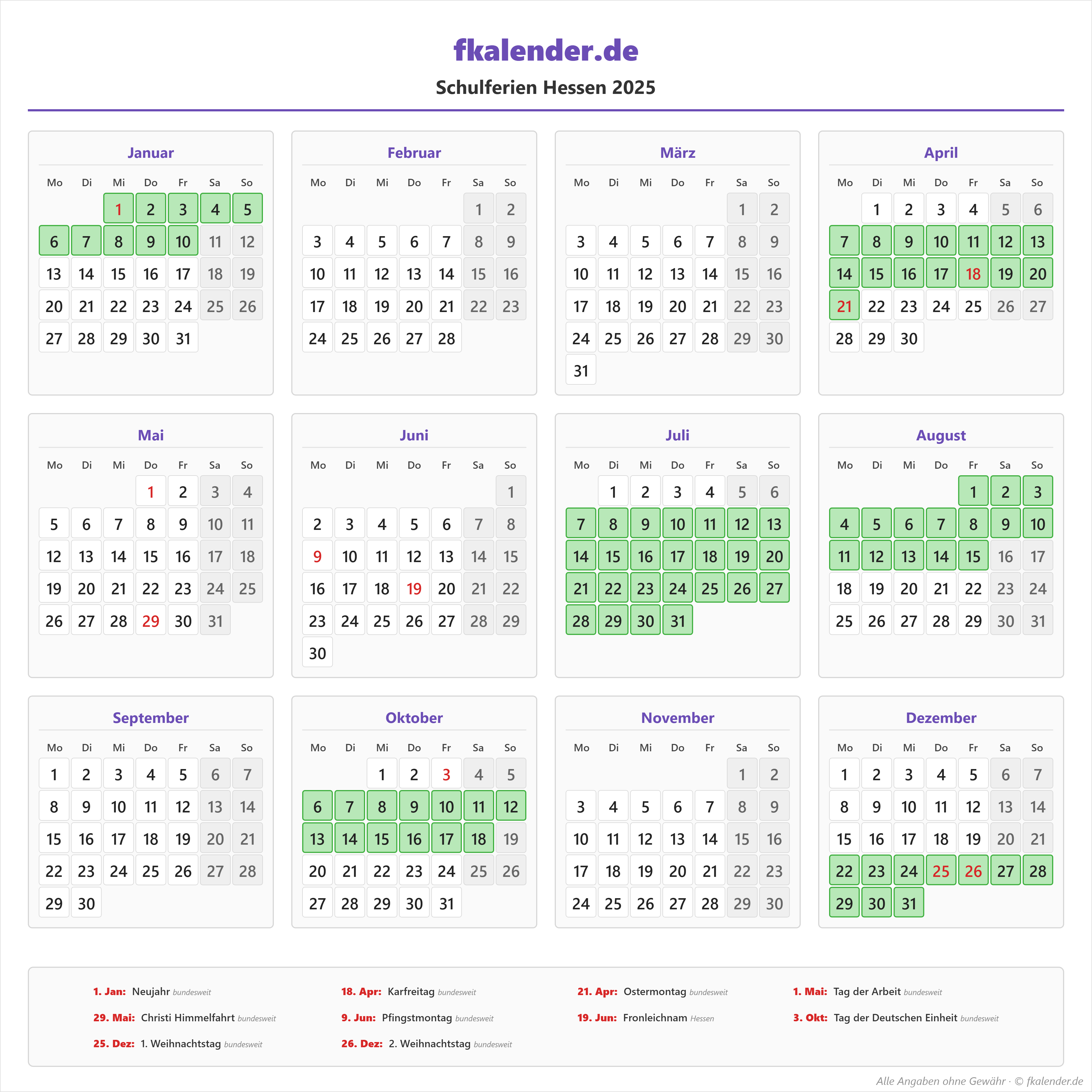 - Weihnachtsferien: 22.12.2025 - 10.01.2026