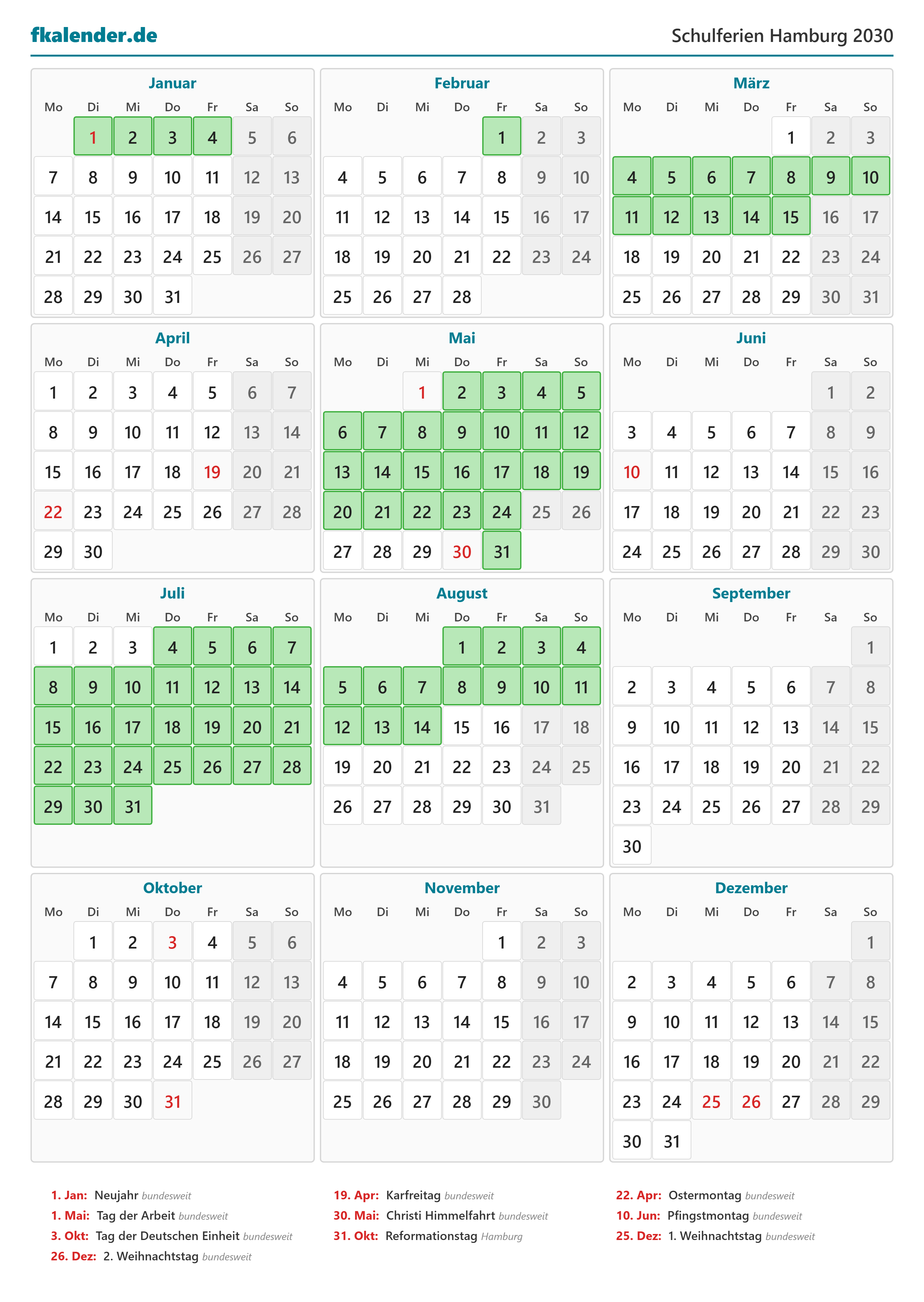 - Sommerferien: 04.07.2030 - 14.08.2030