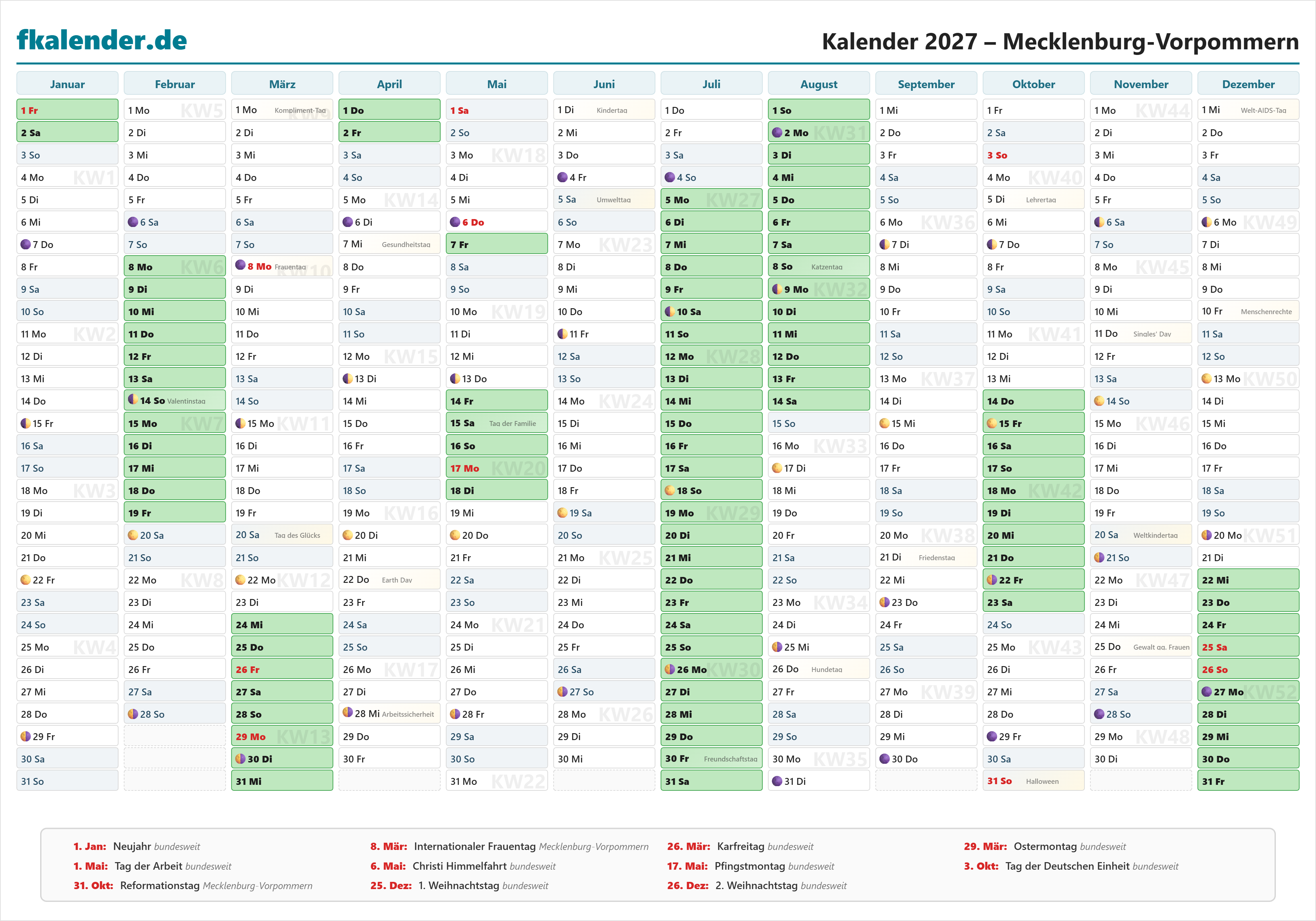 🎉 Feiertage in Mecklenburg-Vorpommern 2027