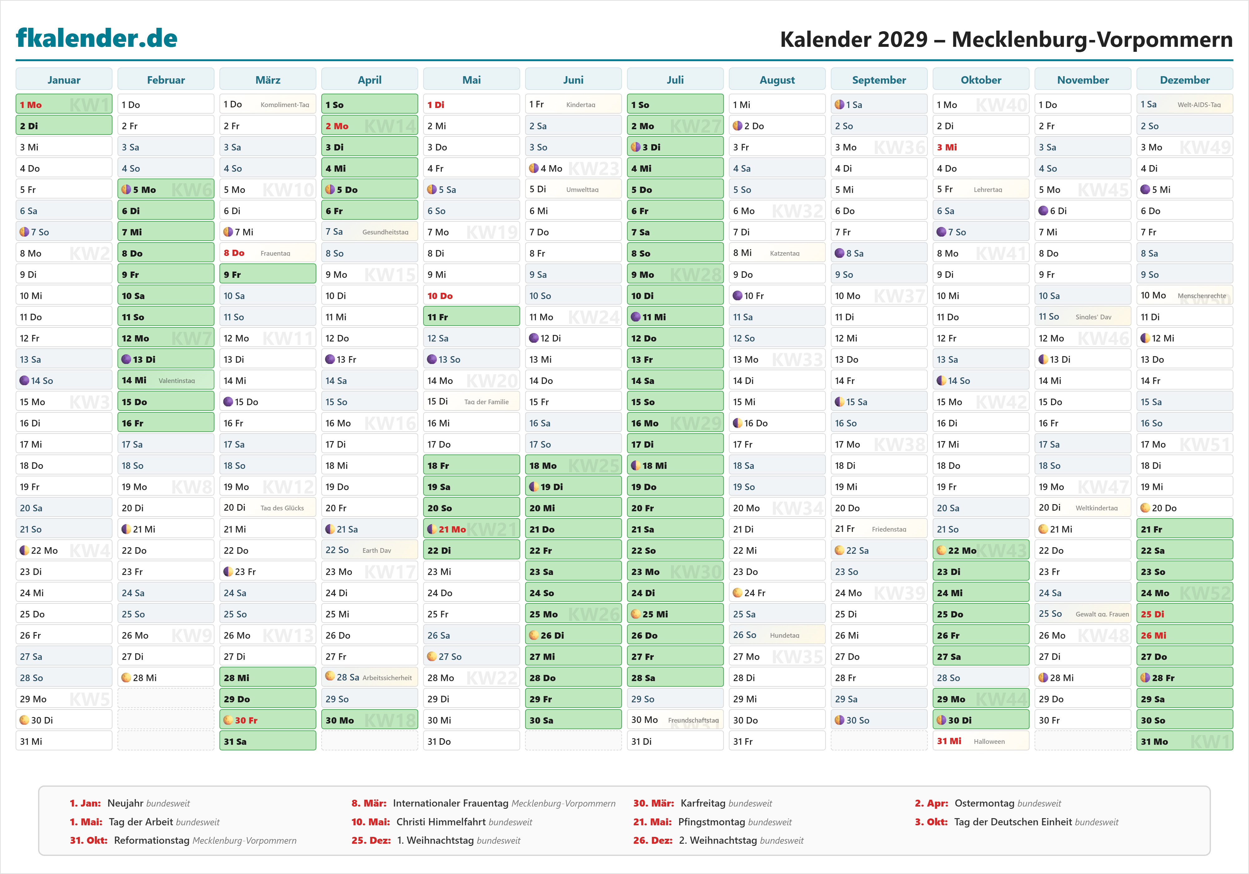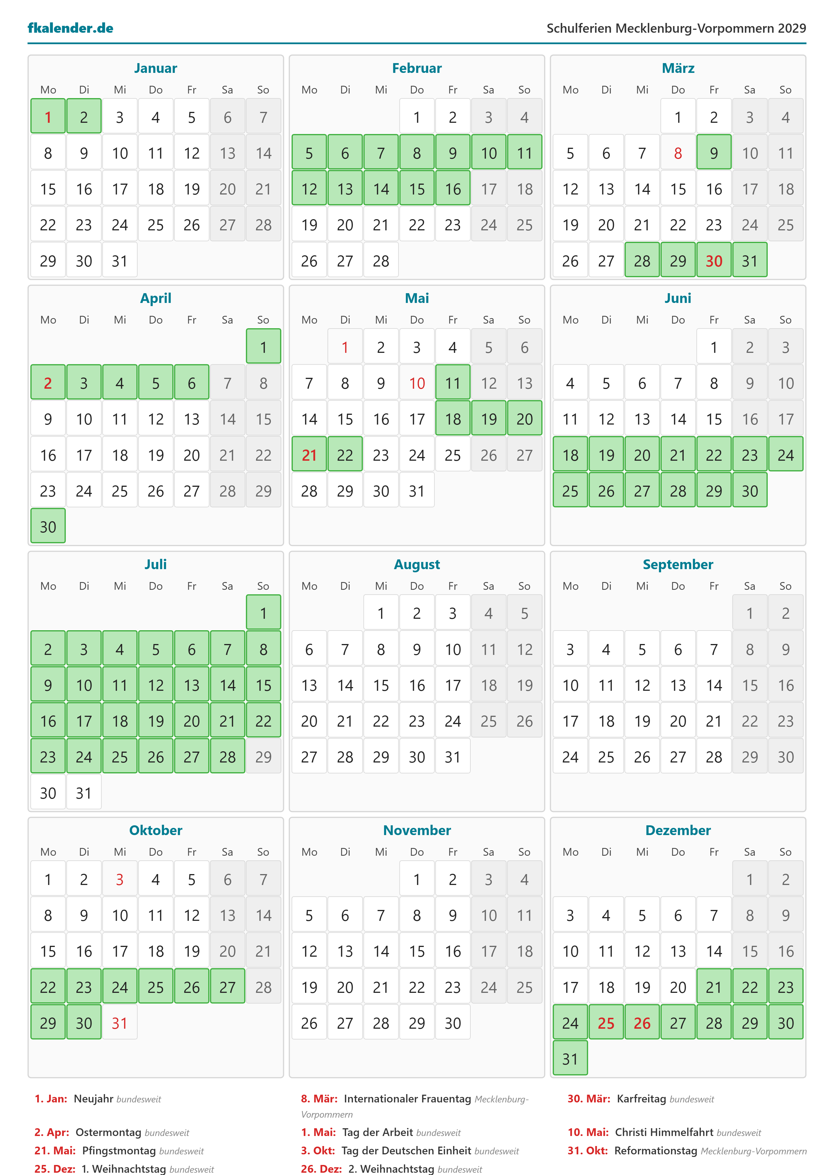🎉 Feiertage in Mecklenburg-Vorpommern 2029