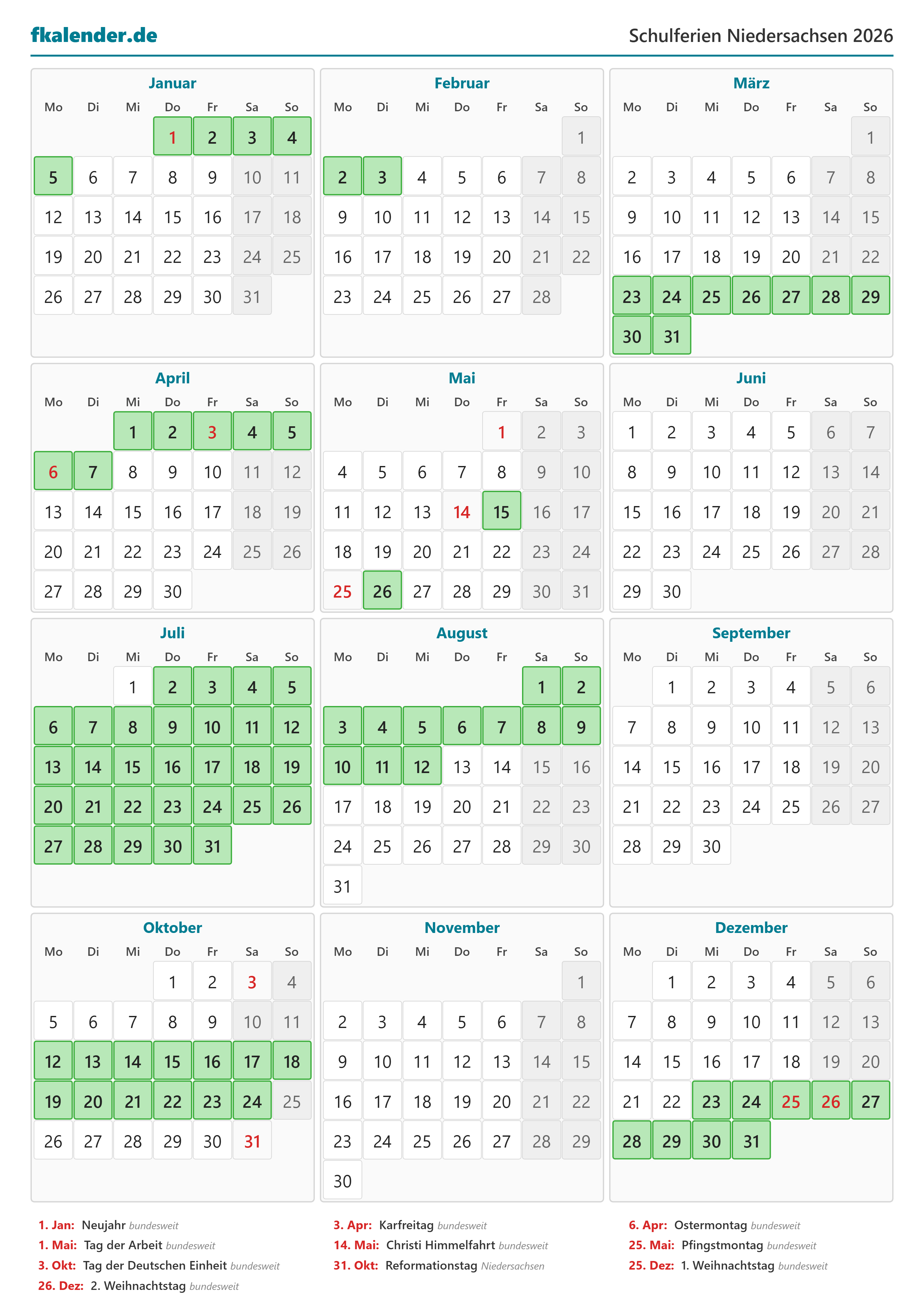 - Weihnachtsferien: 23.12.2026 - 09.01.2027