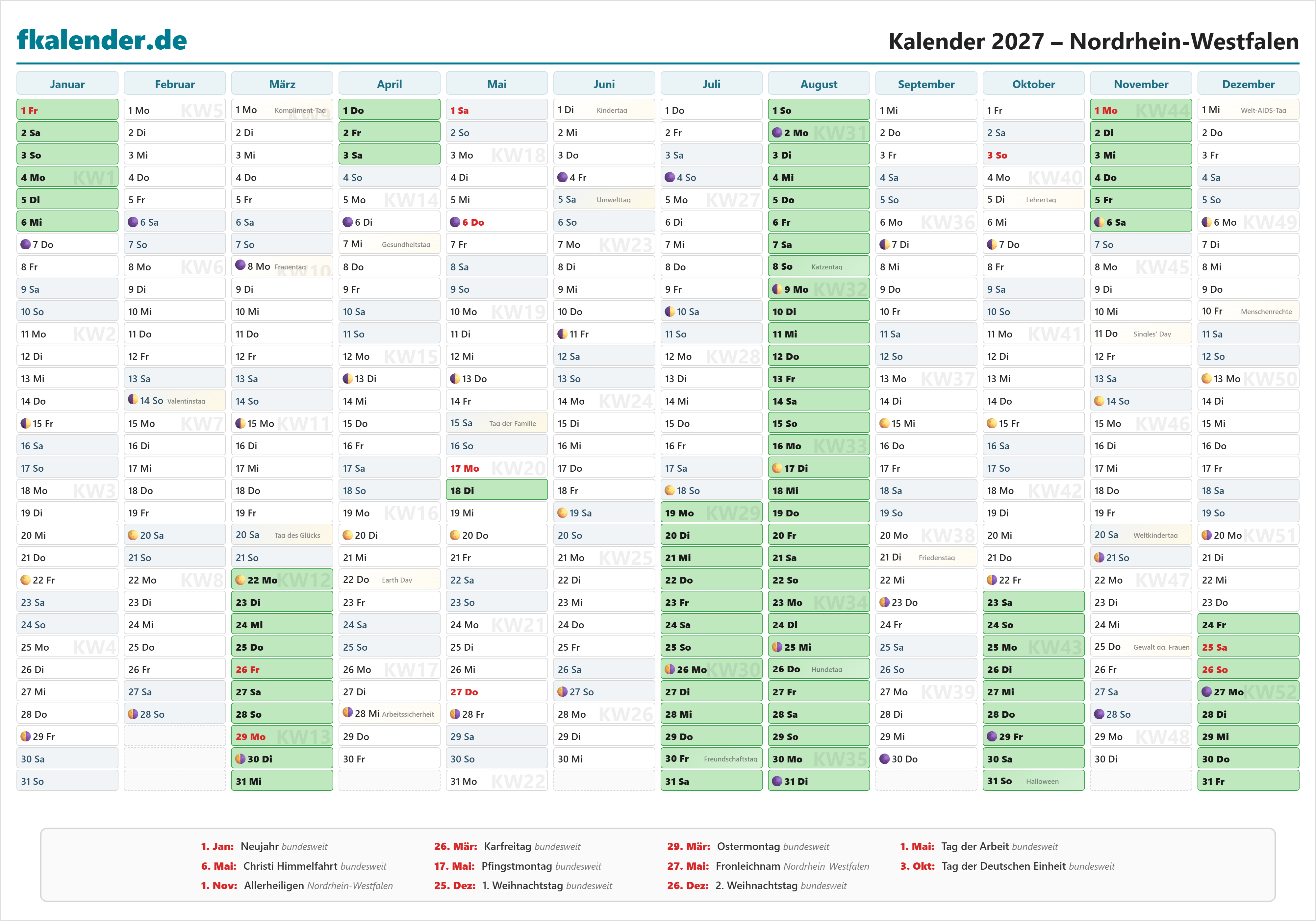 🎉 Feiertage in Nordrhein-Westfalen 2027