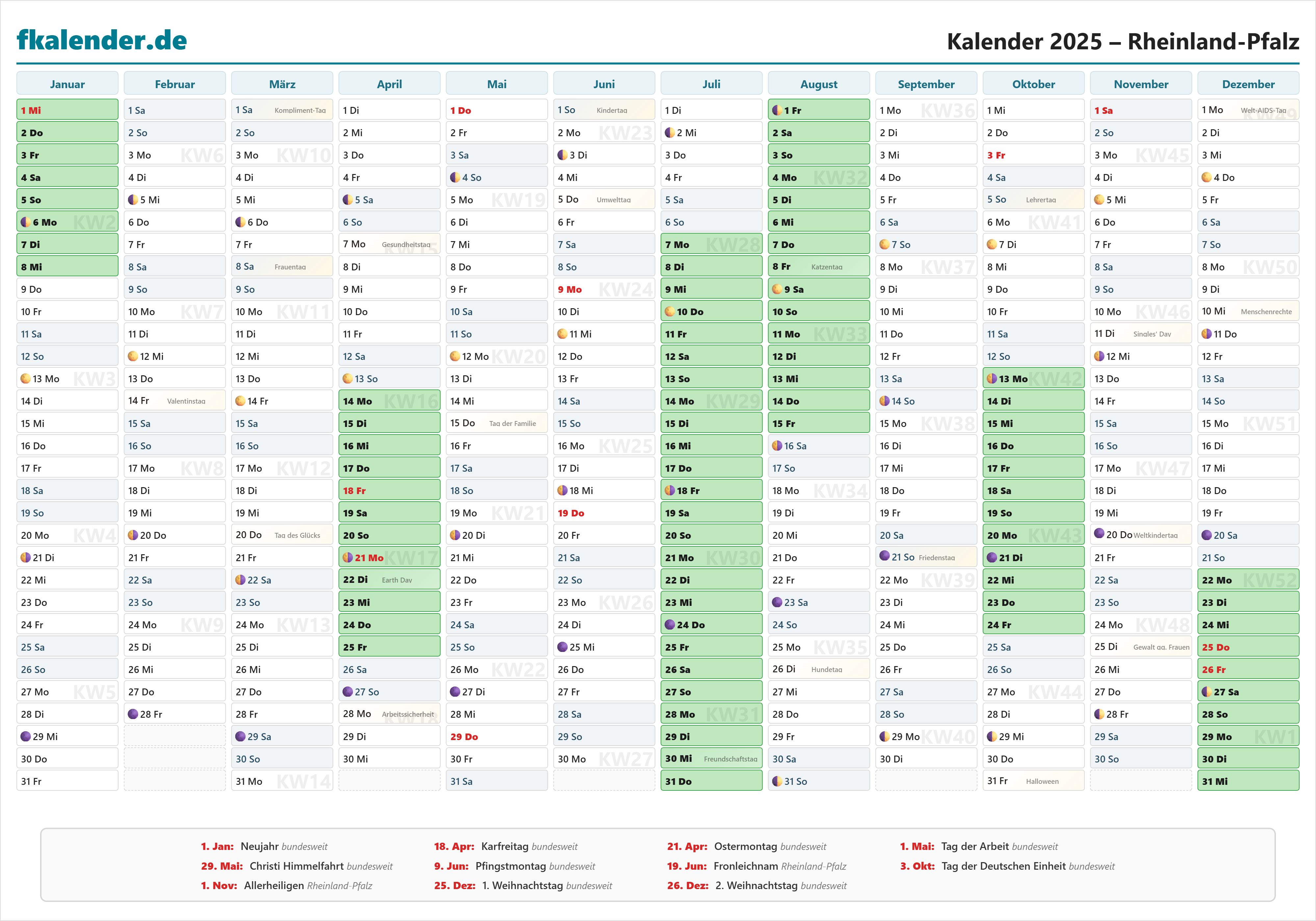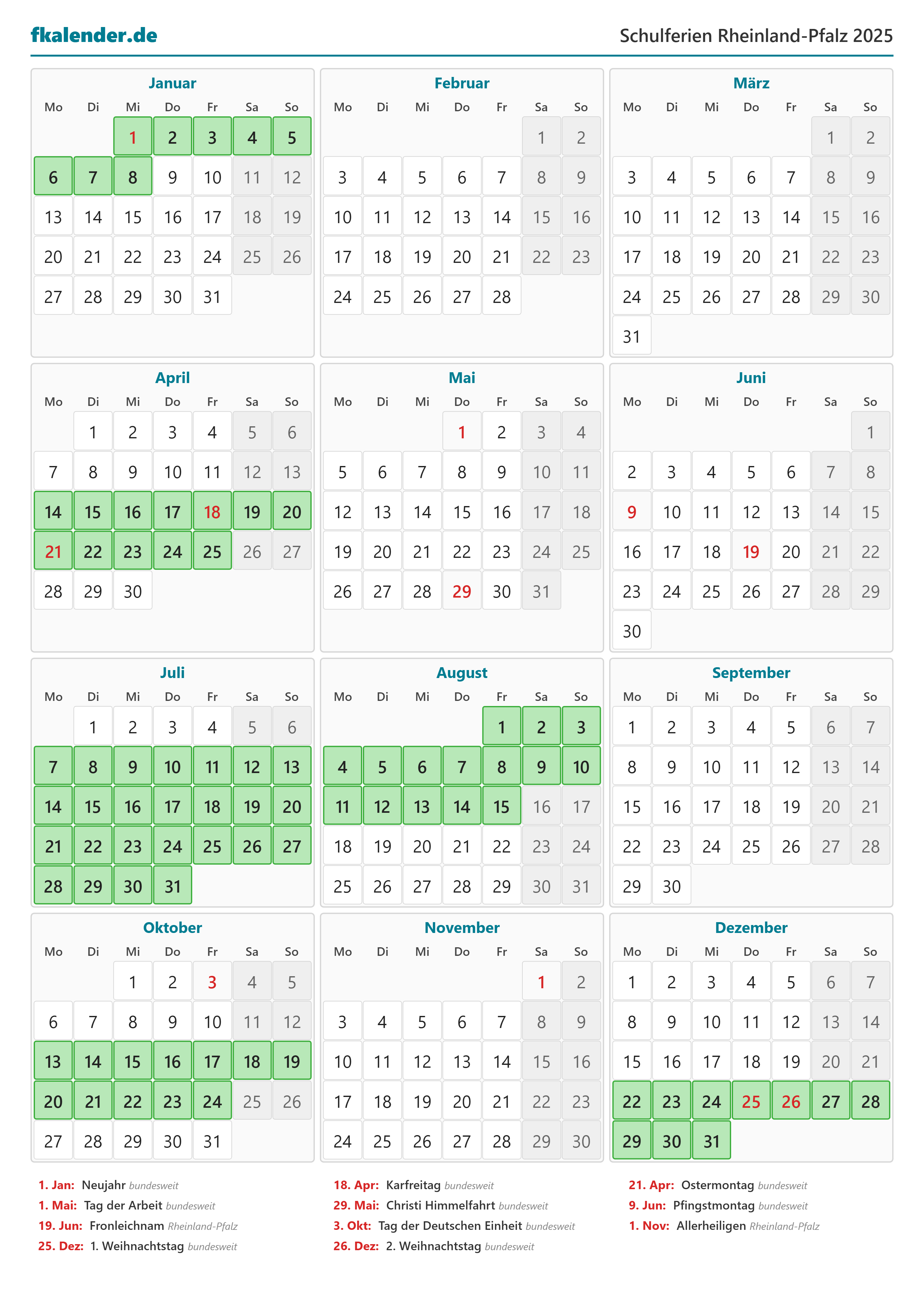 Ferienkalender Rheinland-Pfalz 2025 herunterladen