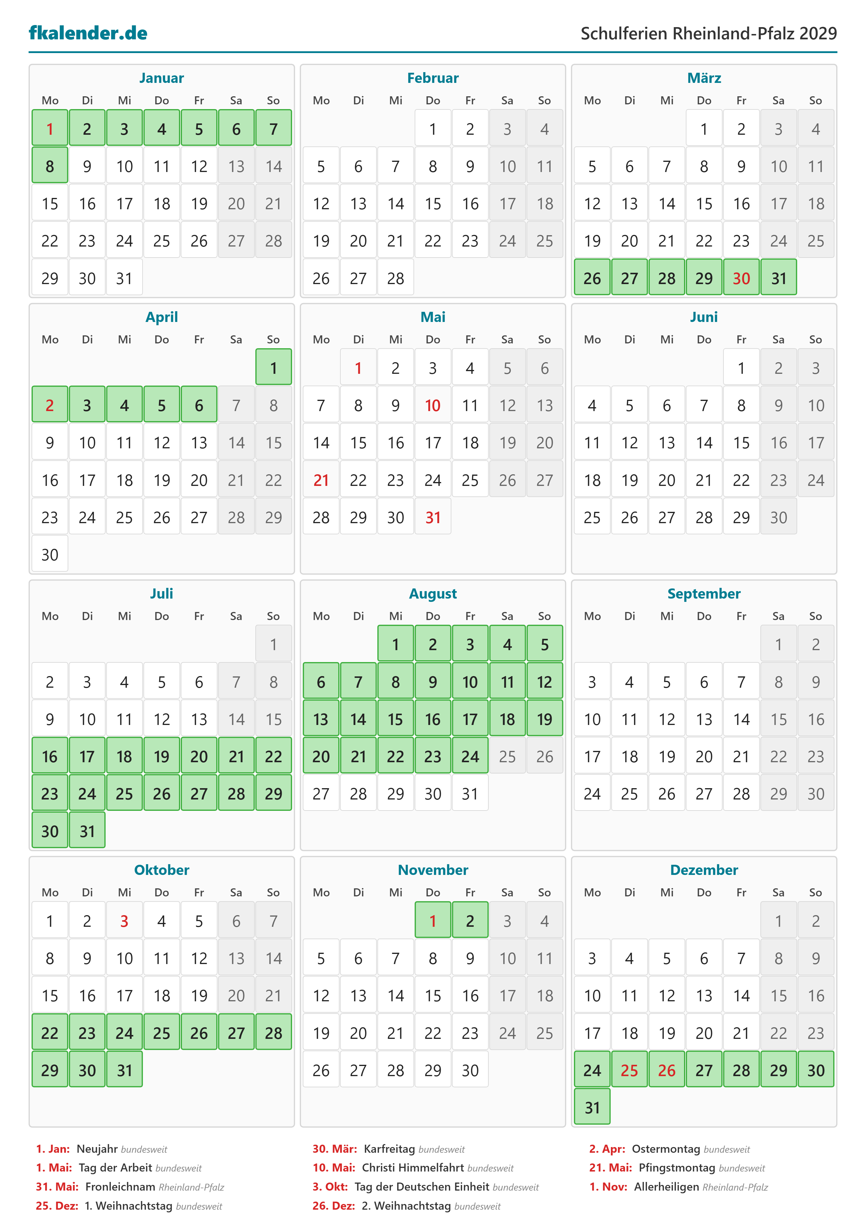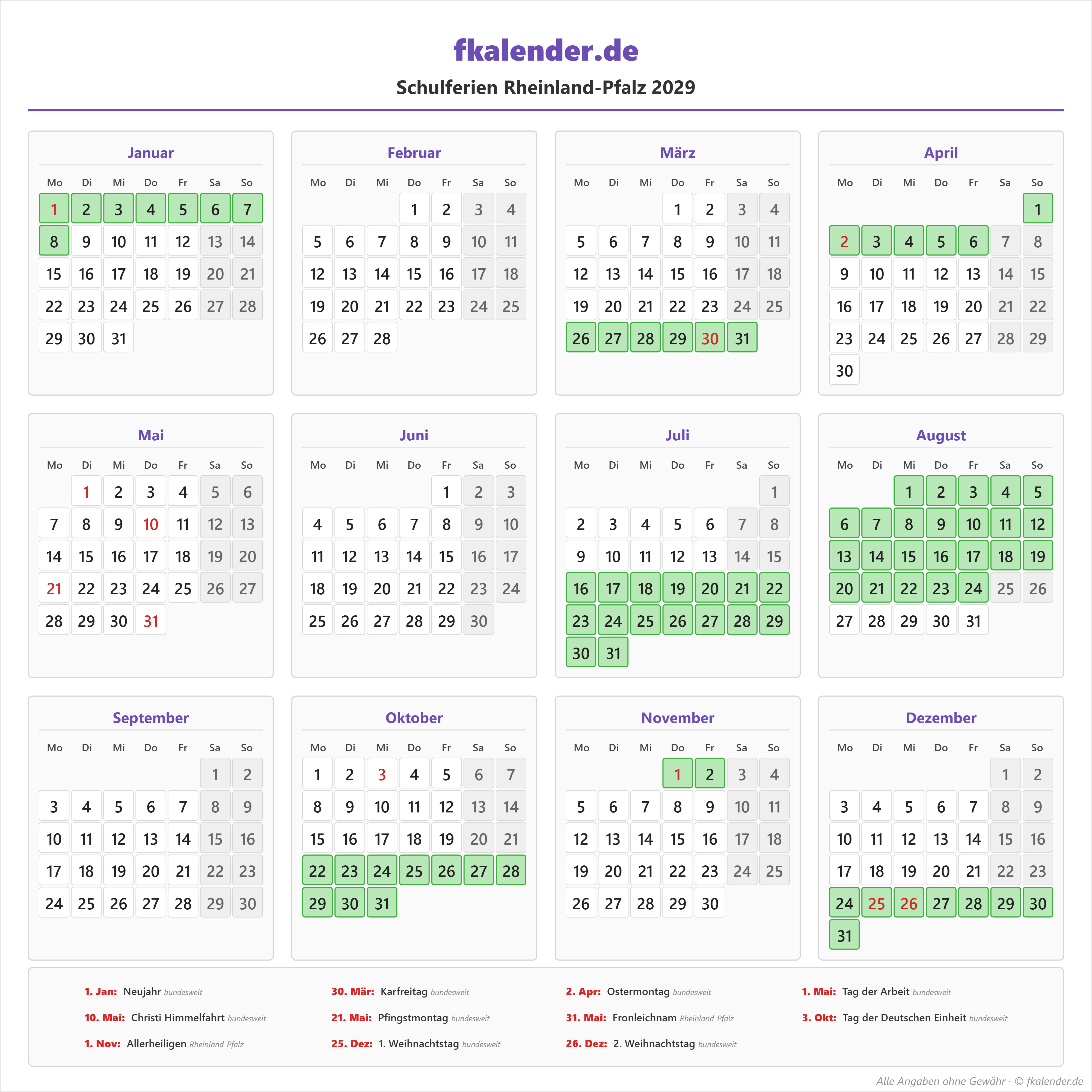 Ferienkalender Rheinland-Pfalz 2029 herunterladen