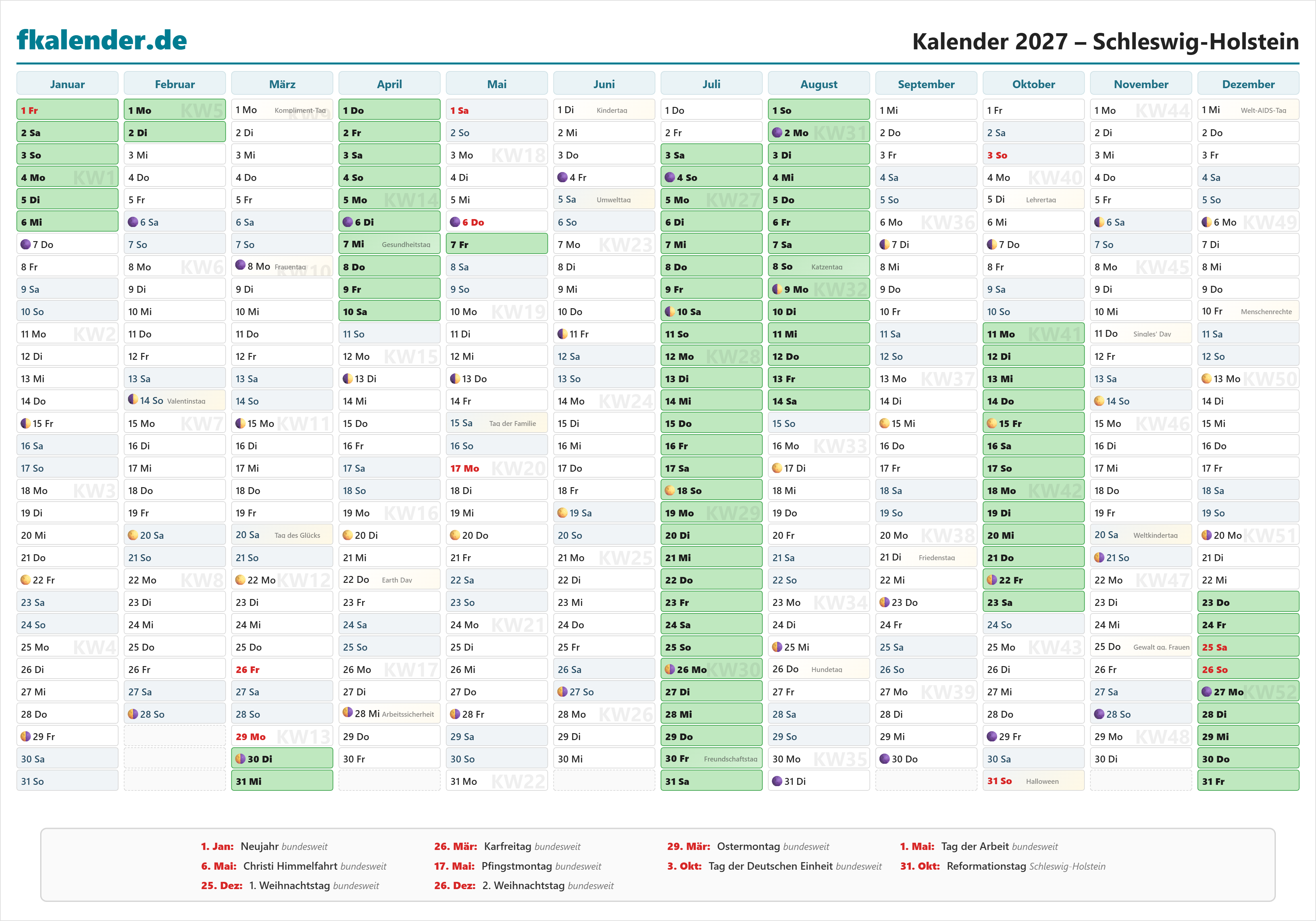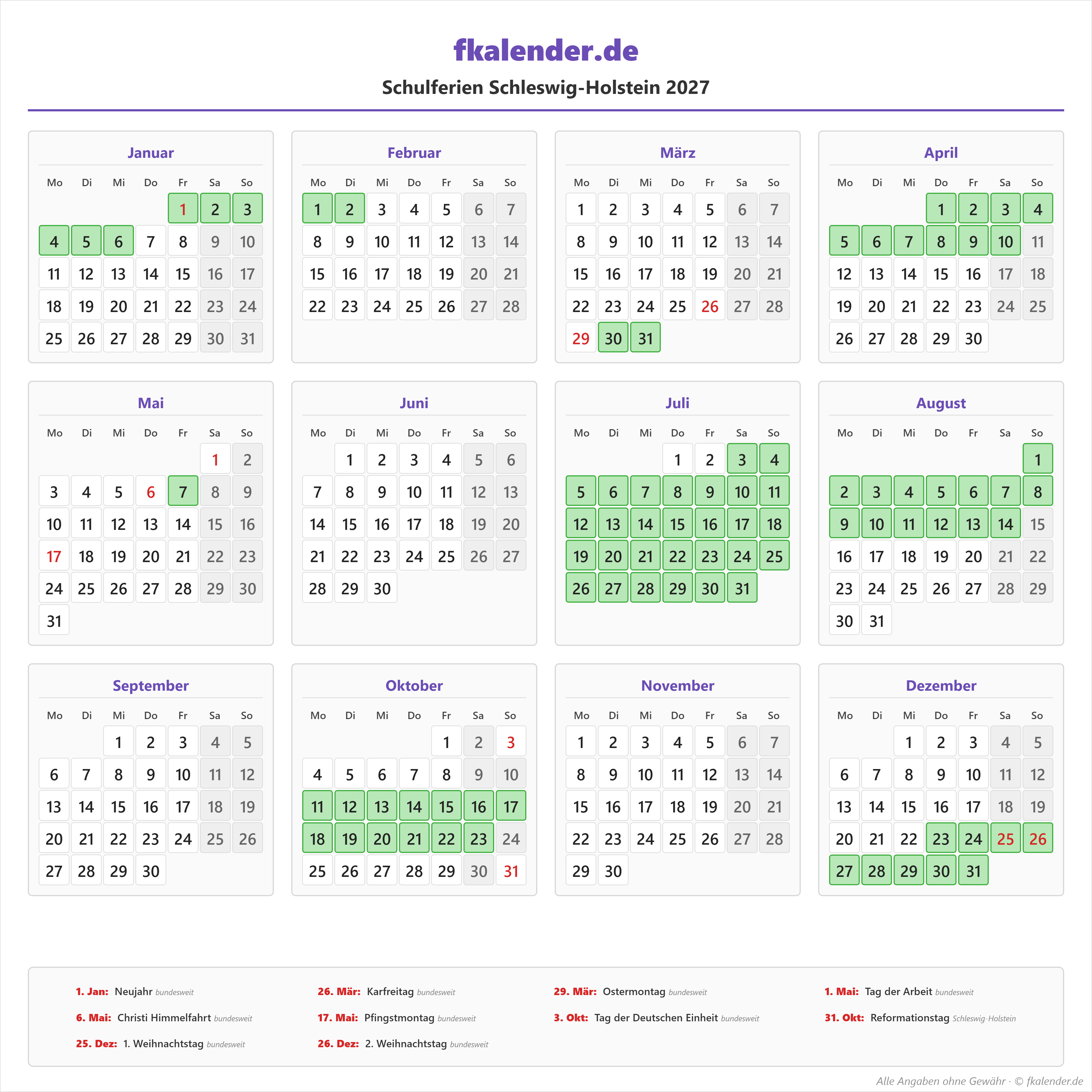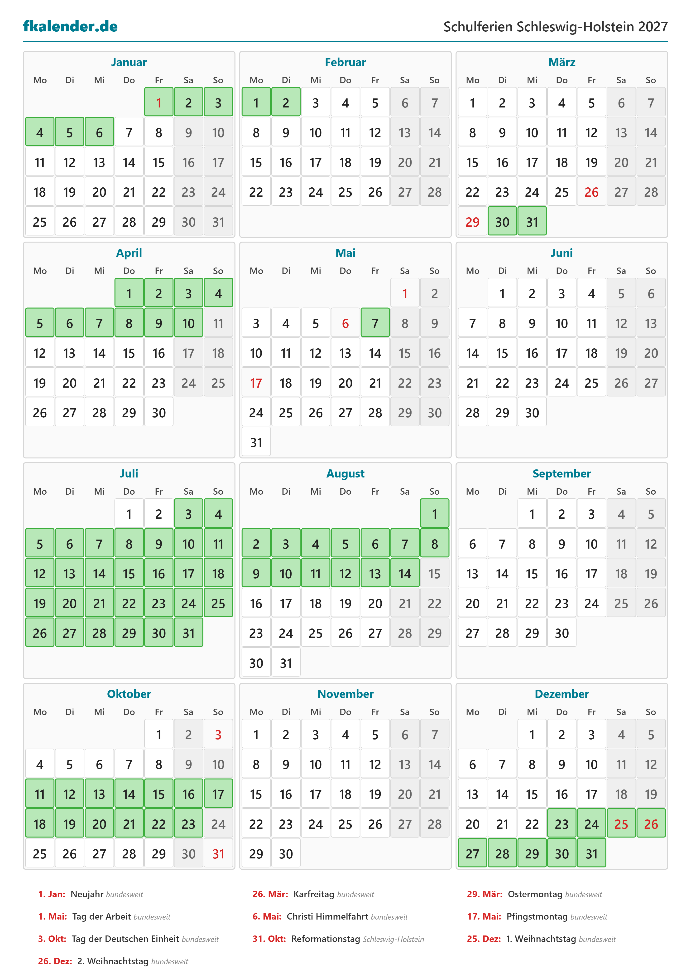 Ferienkalender Schleswig-Holstein 2027 herunterladen