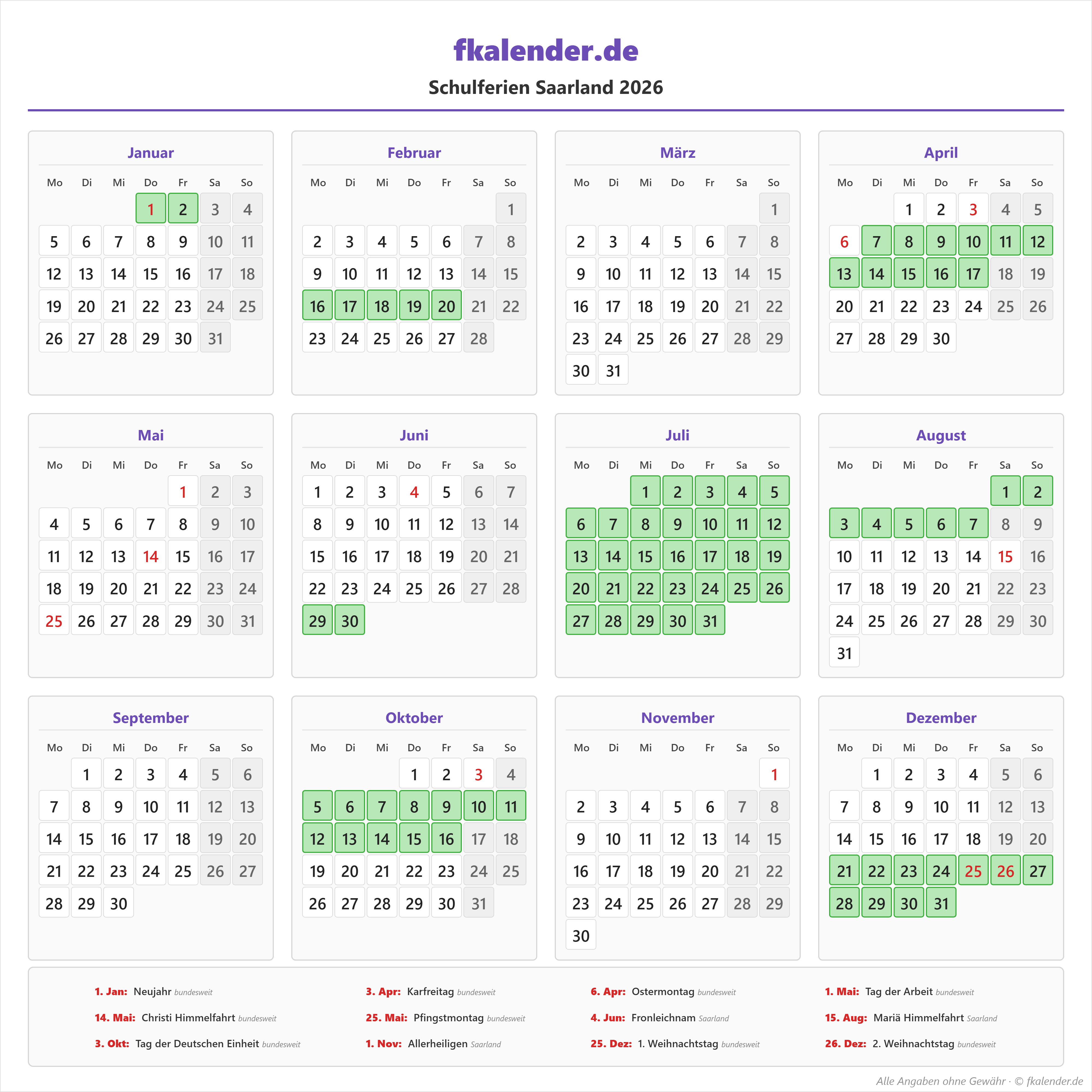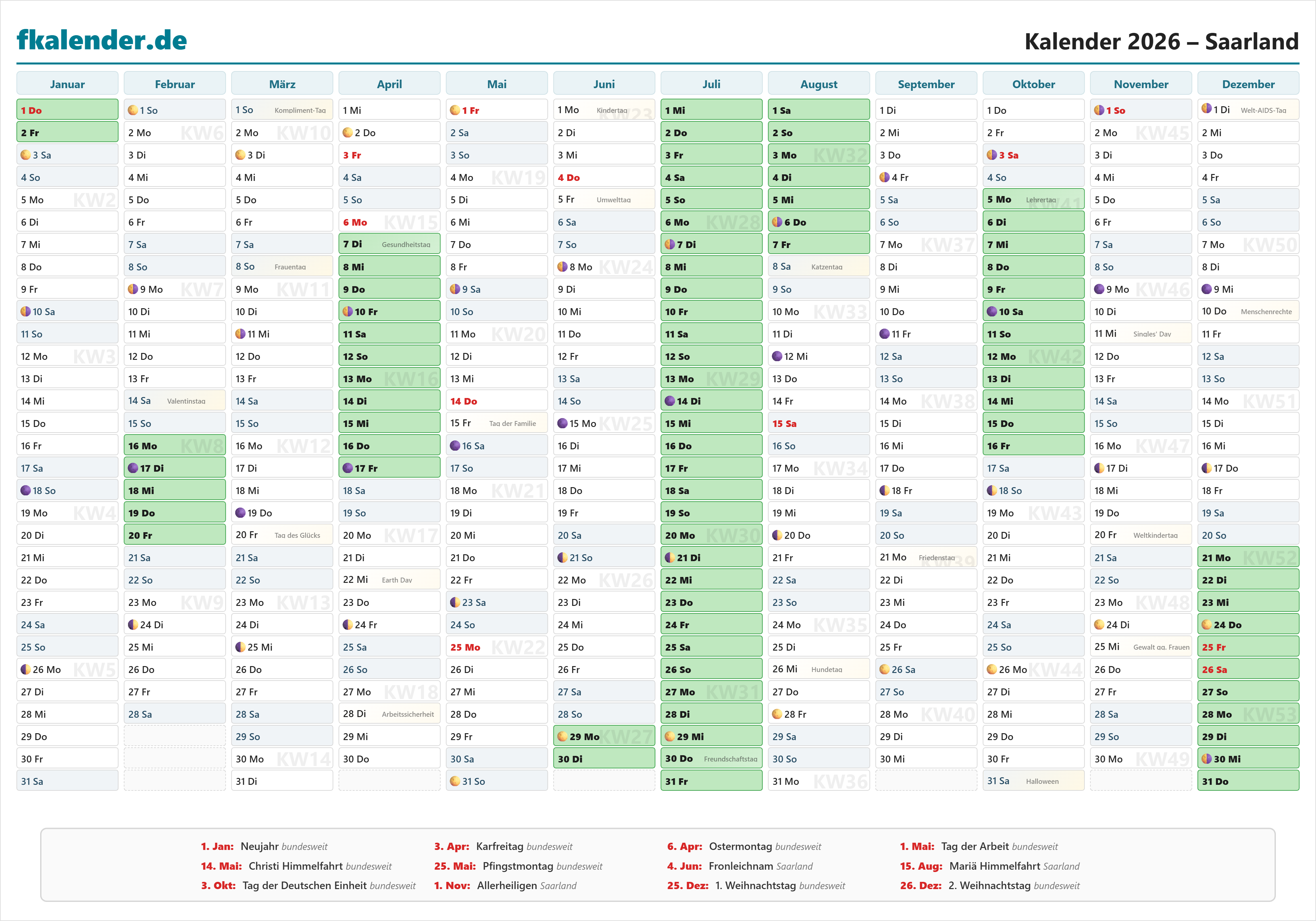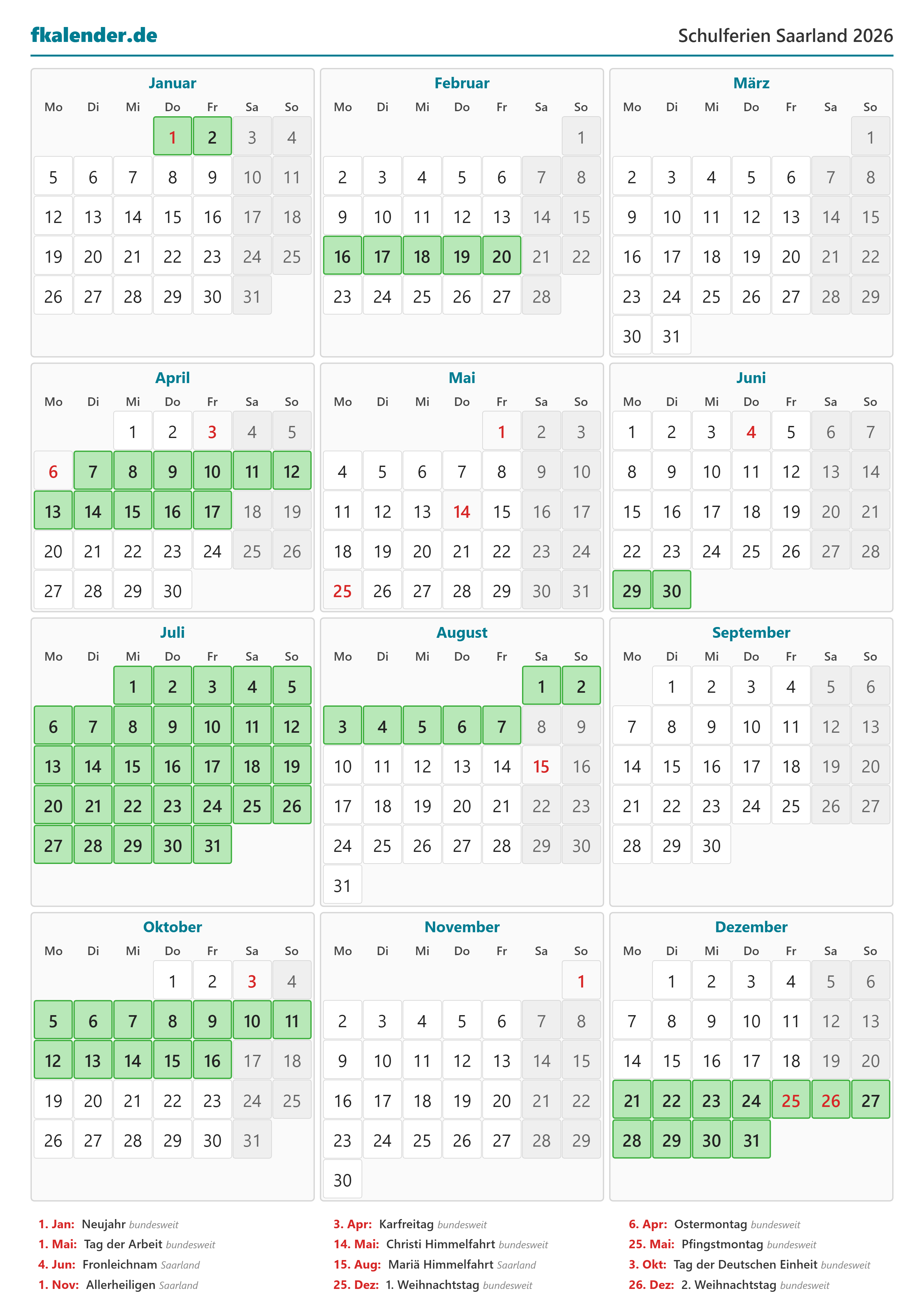 🎉 Feiertage in Saarland 2026