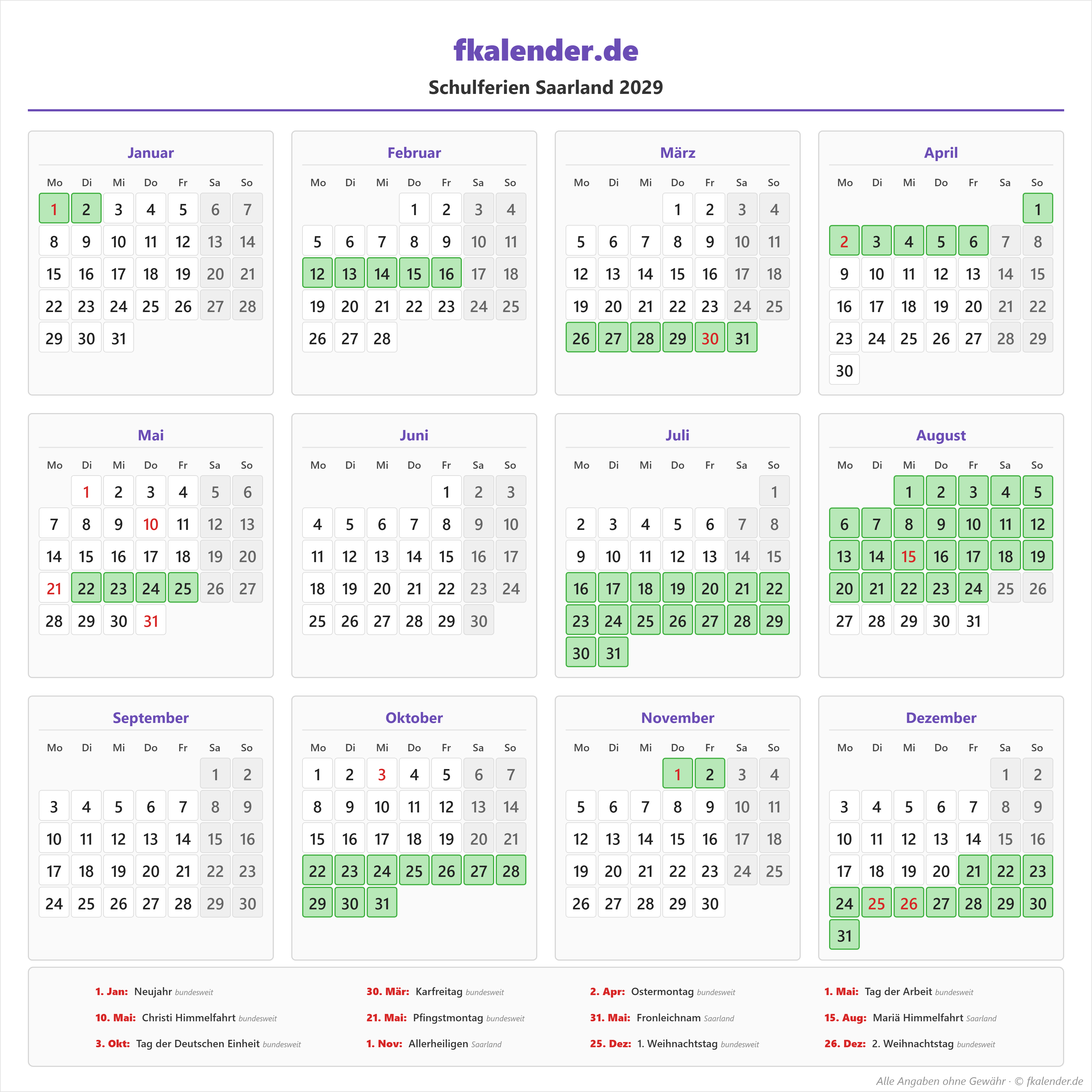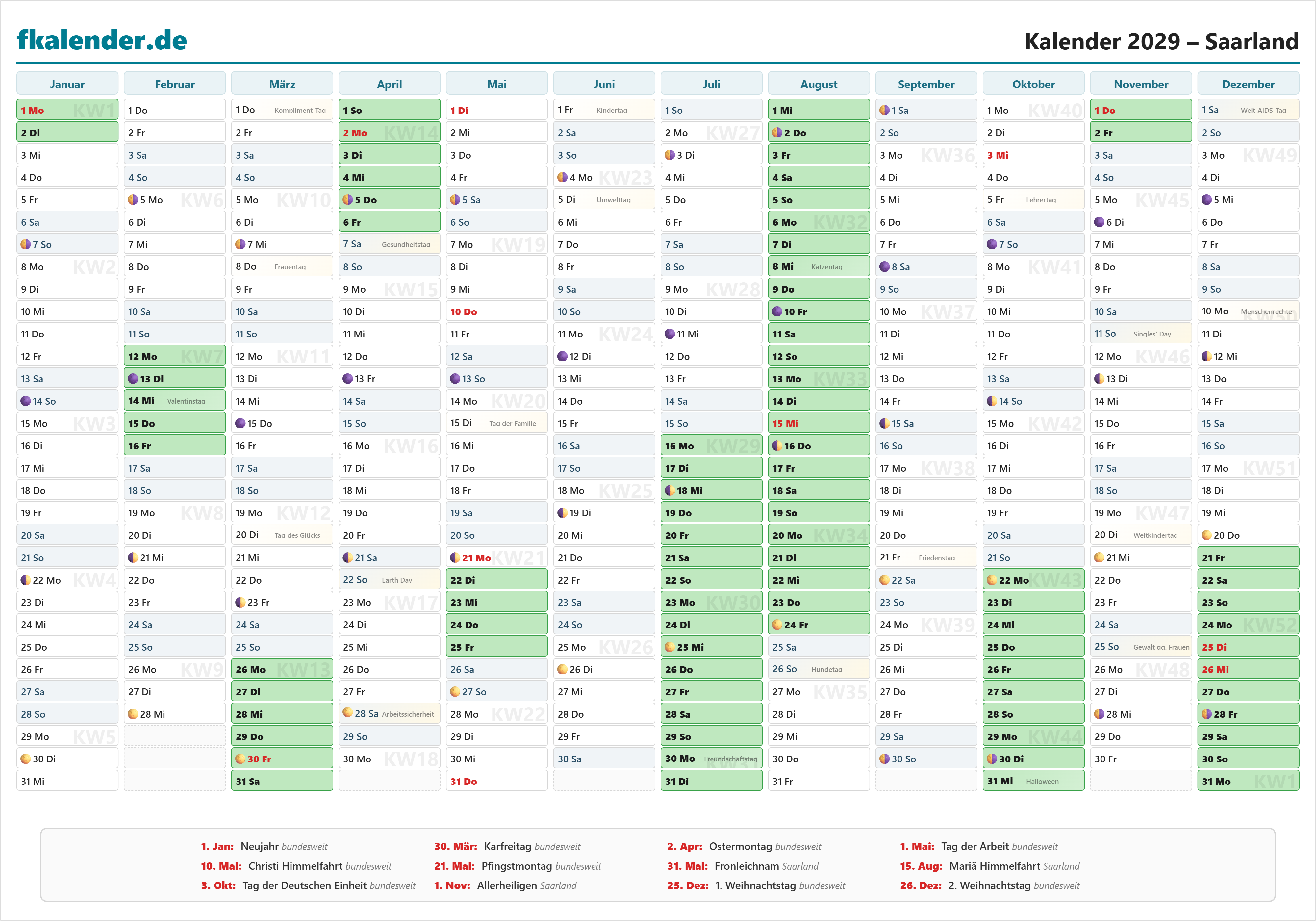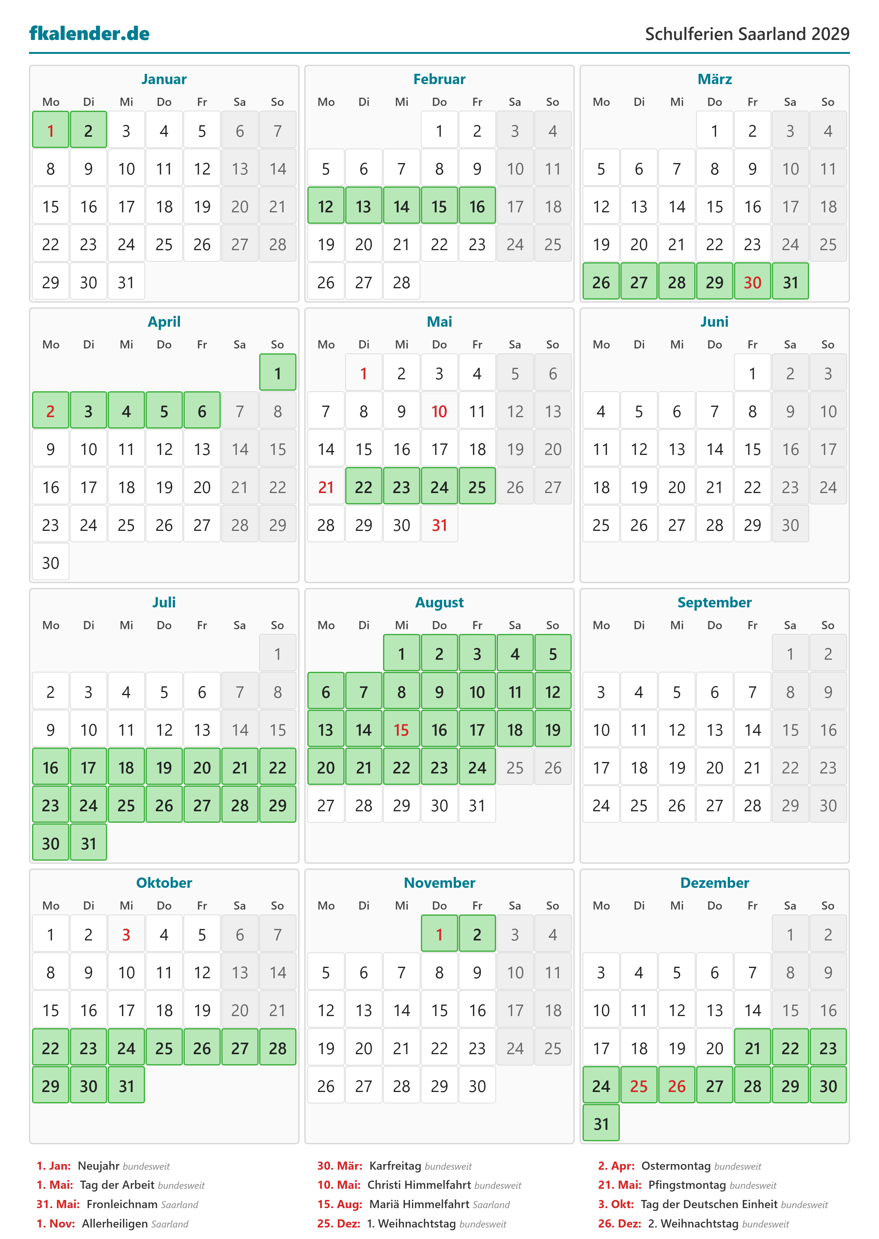 🎉 Feiertage in Saarland 2029