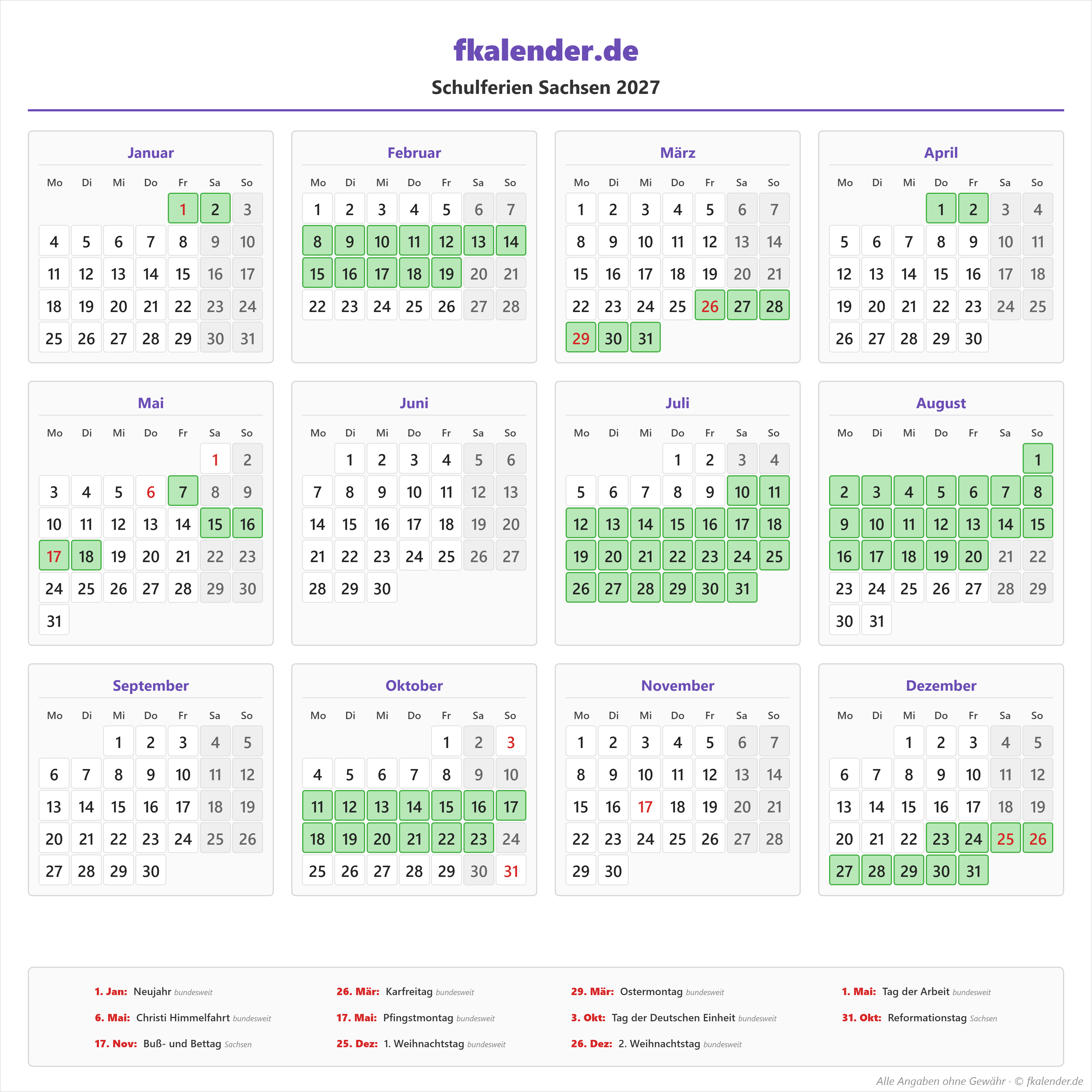 🎉 Feiertage in Sachsen 2027
