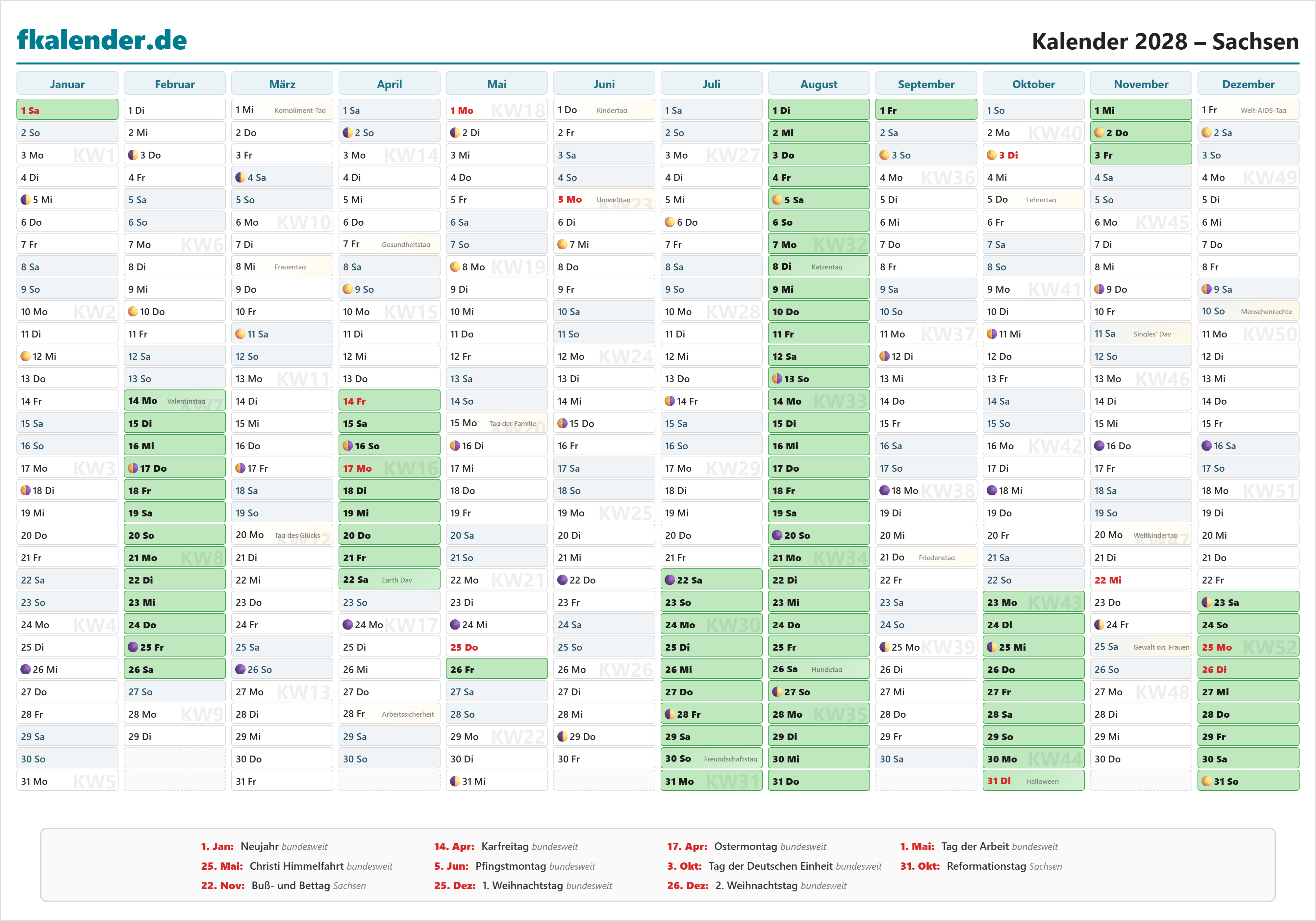 🎉 Feiertage in Sachsen 2028