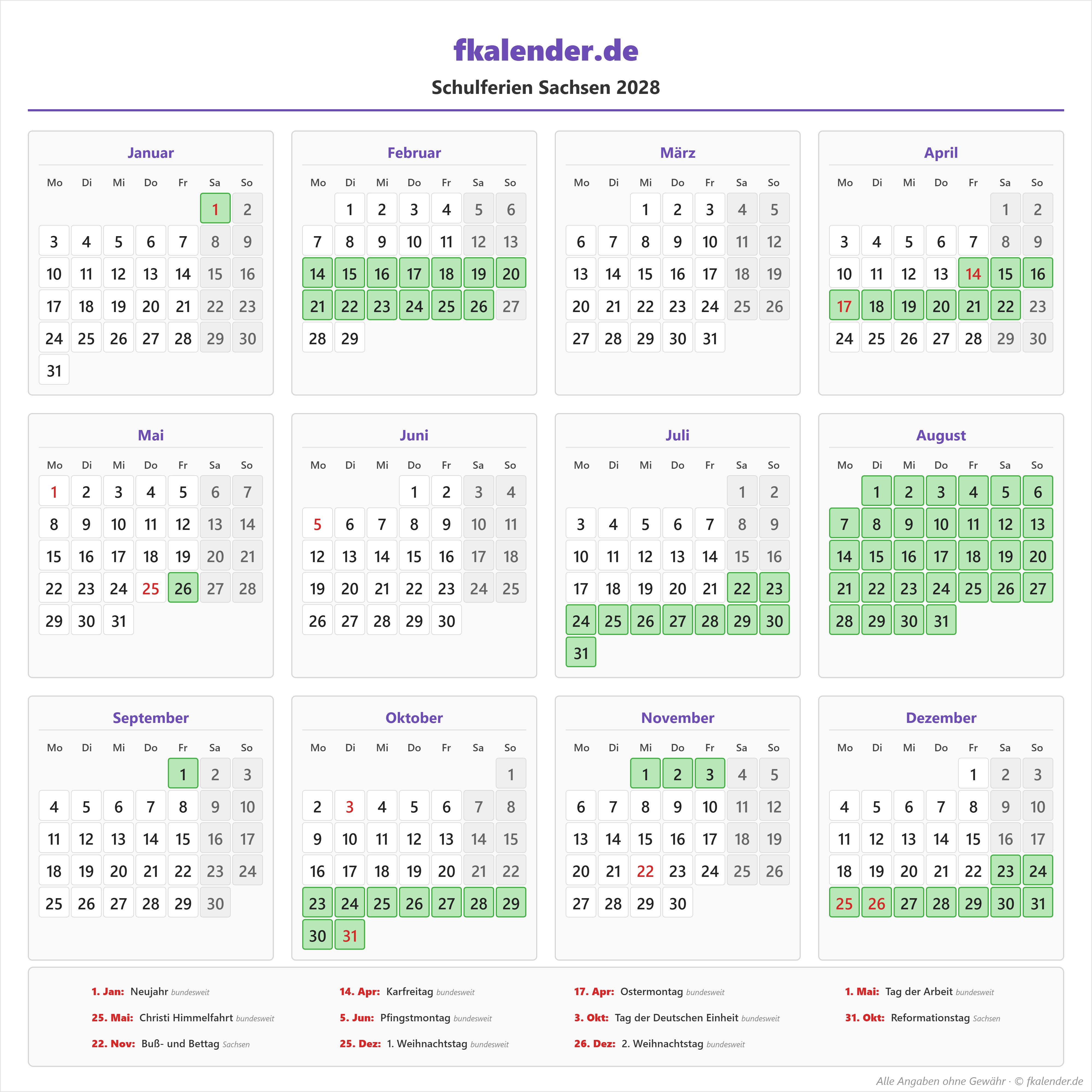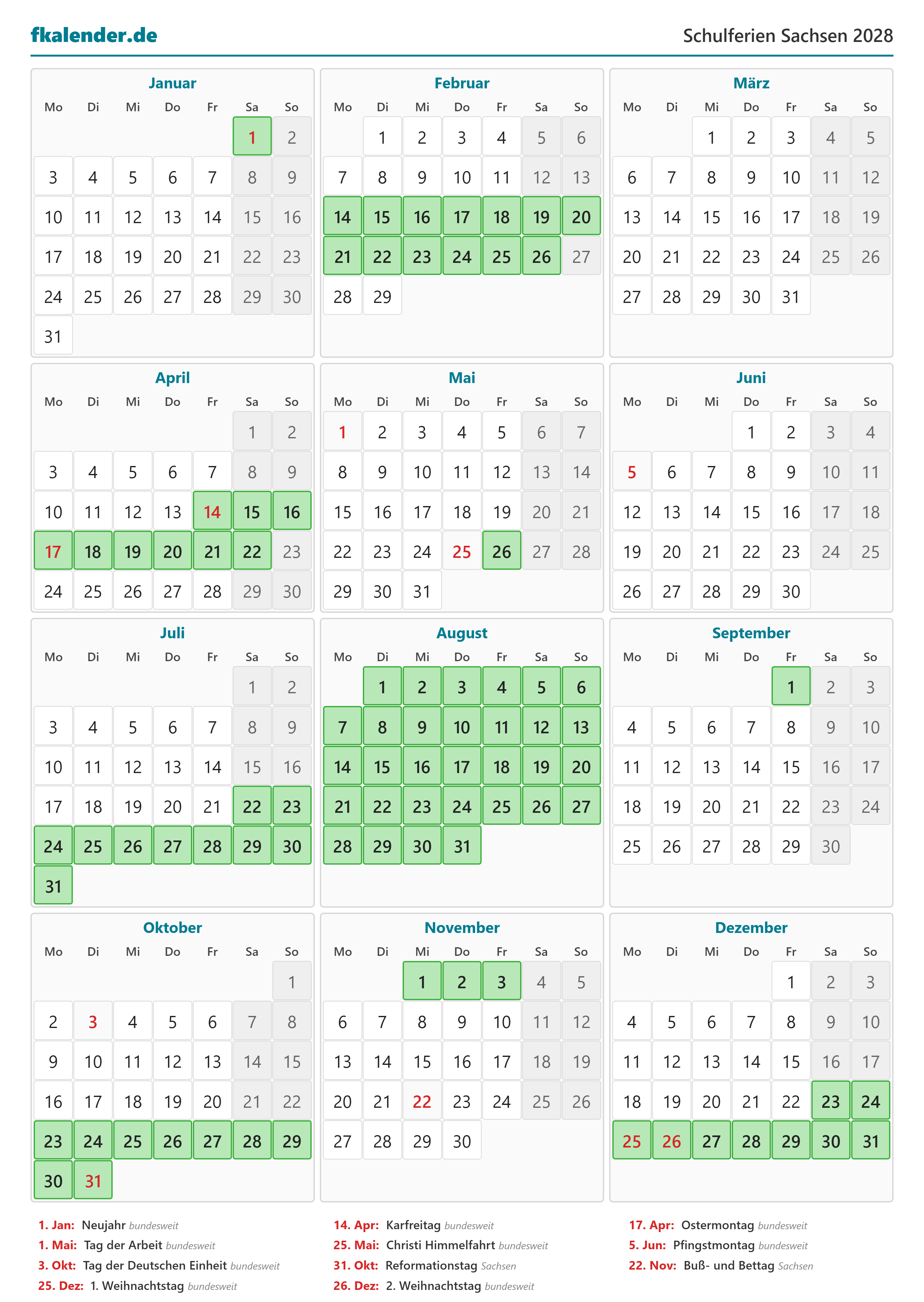Ferienkalender Sachsen 2028 herunterladen