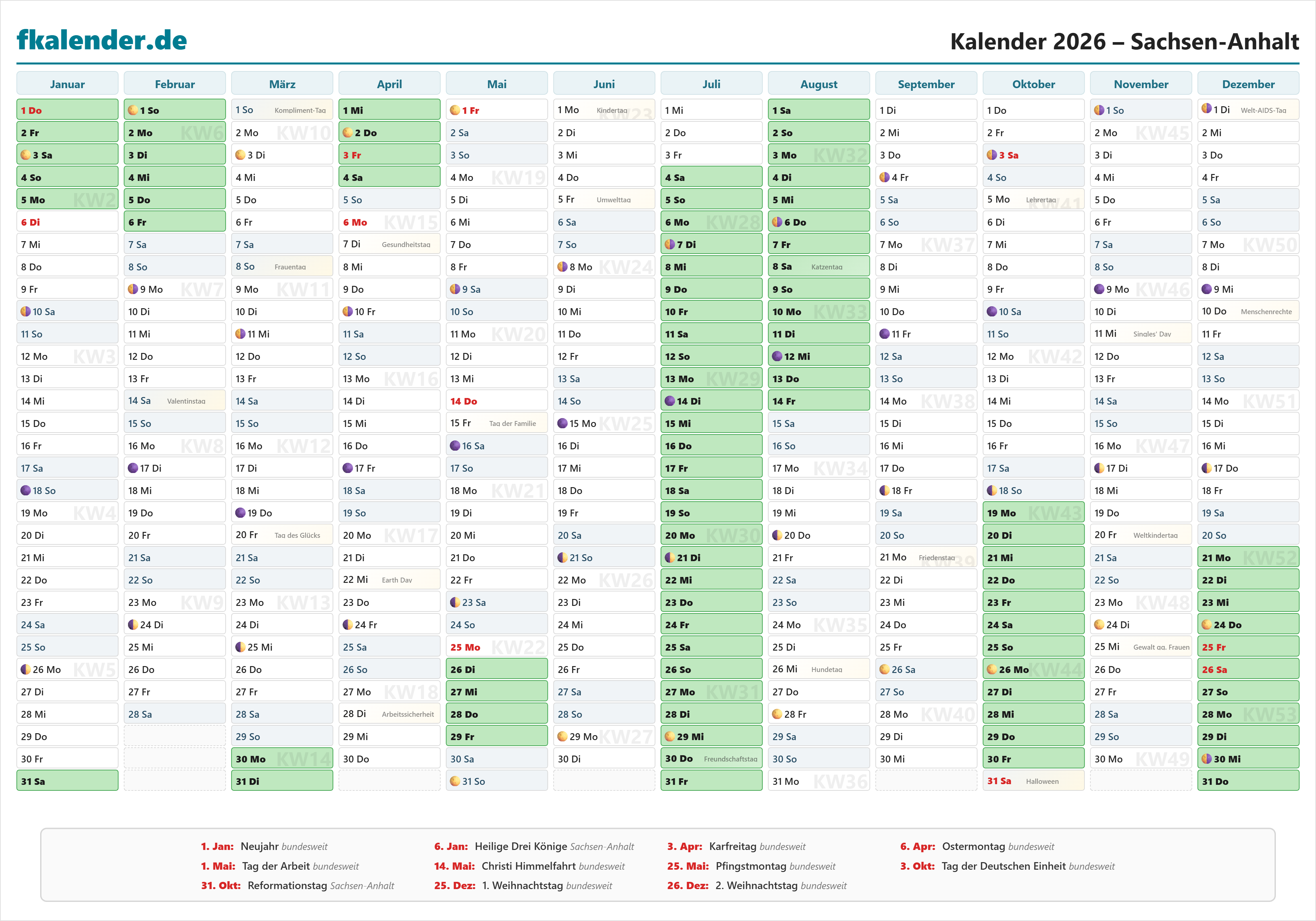 🎉 Feiertage in Sachsen-Anhalt 2026