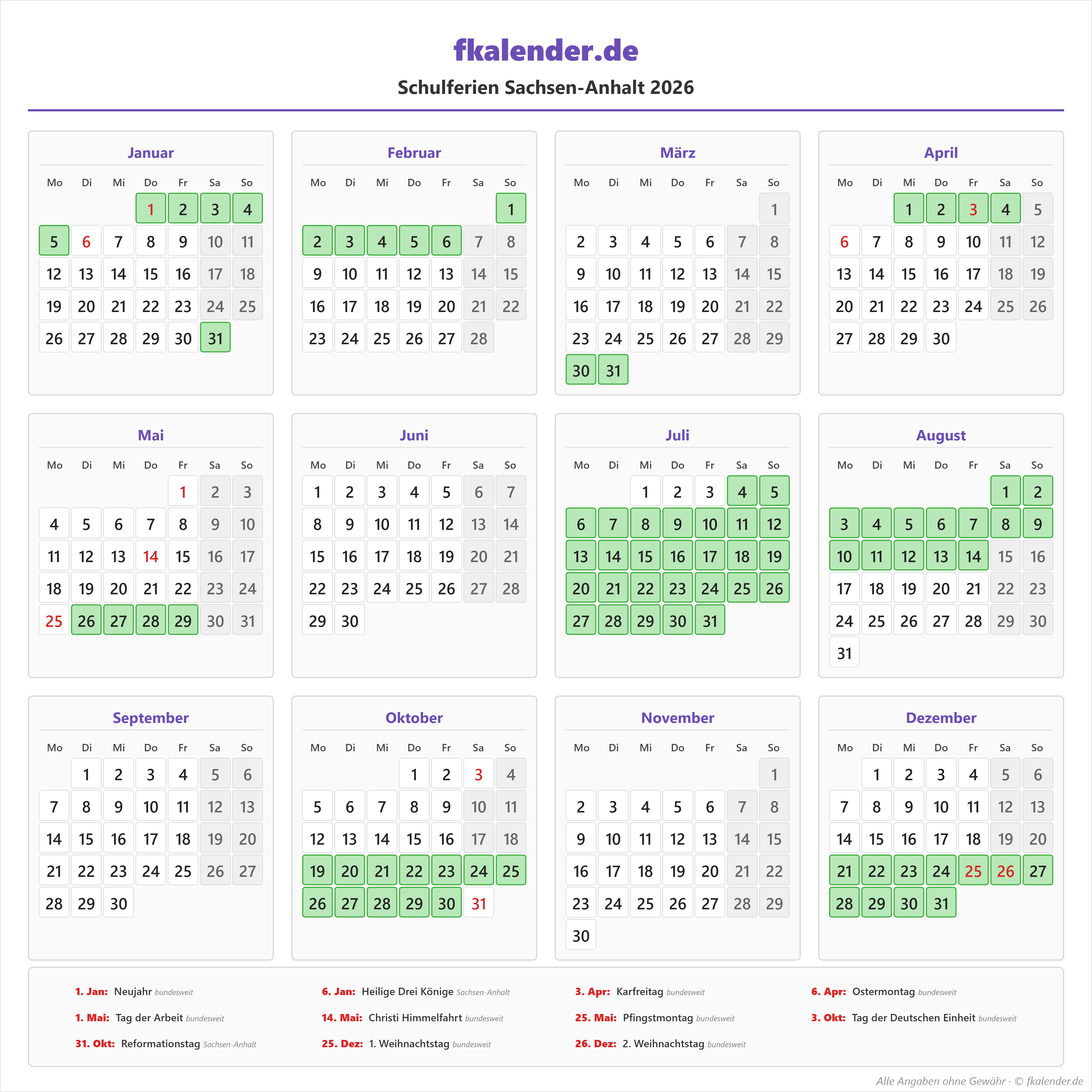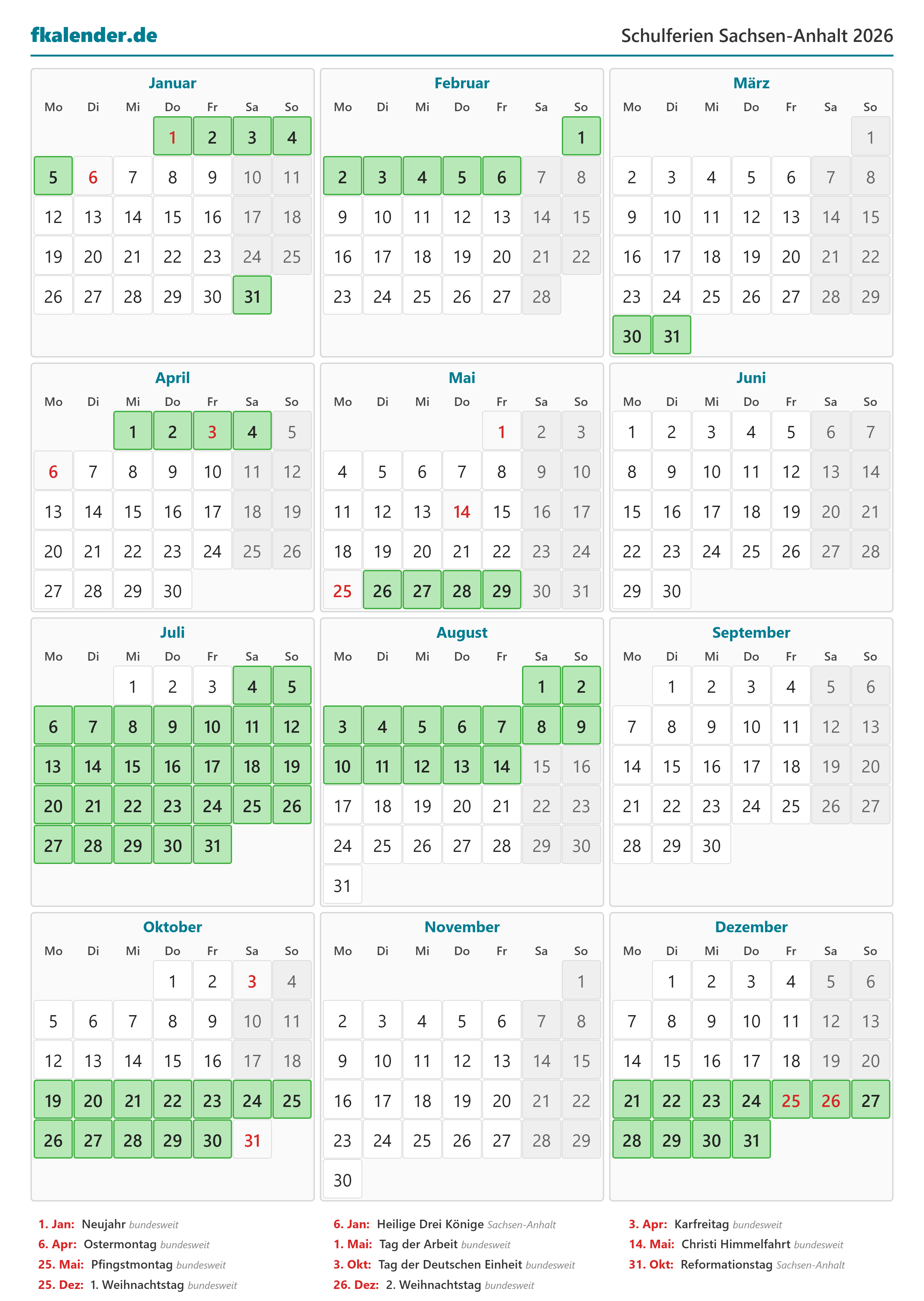 📅 Schulferien Sachsen-Anhalt 2026
