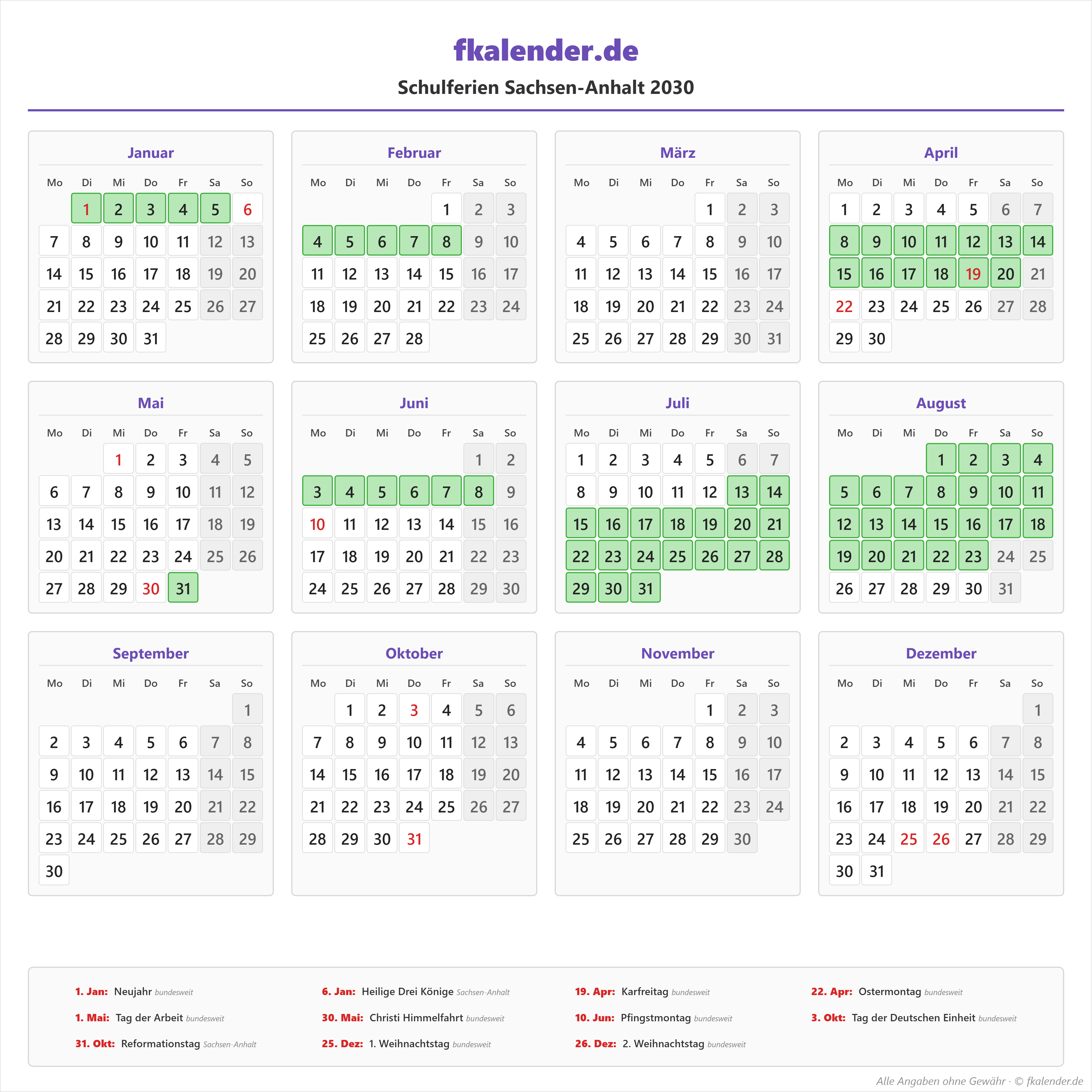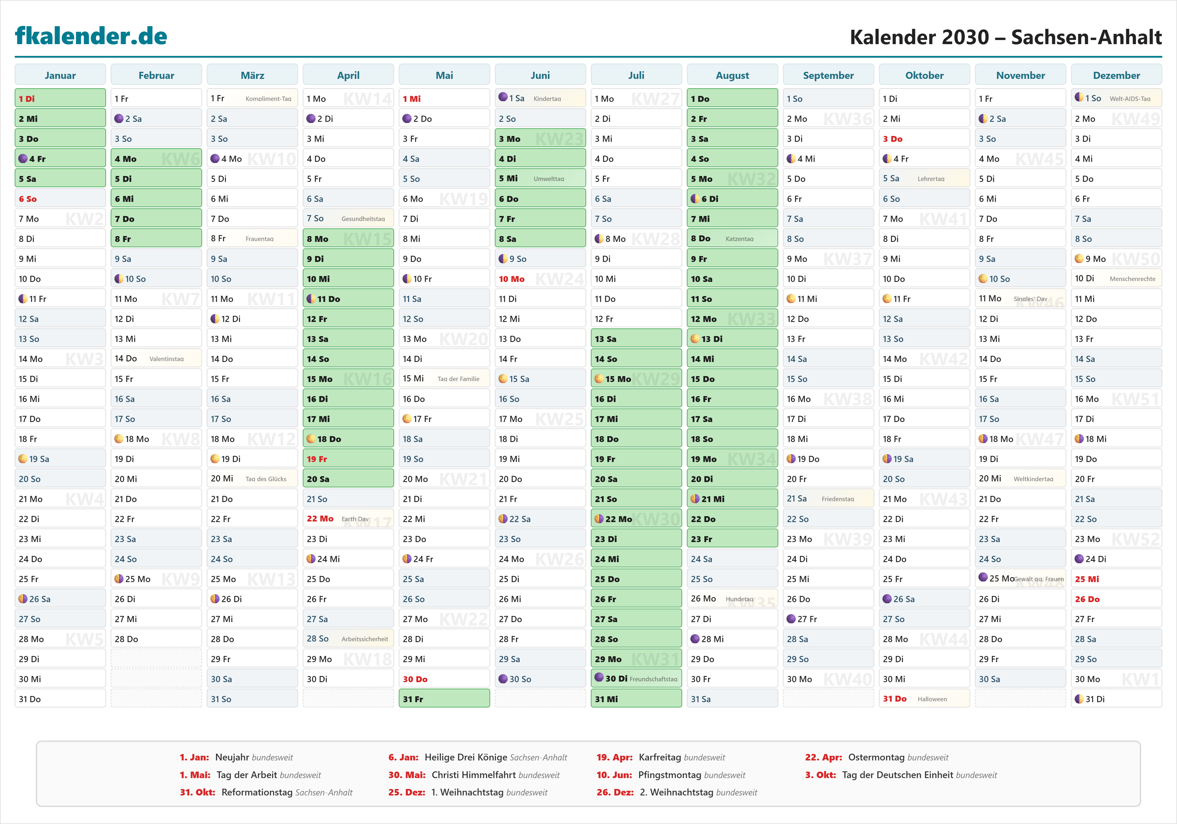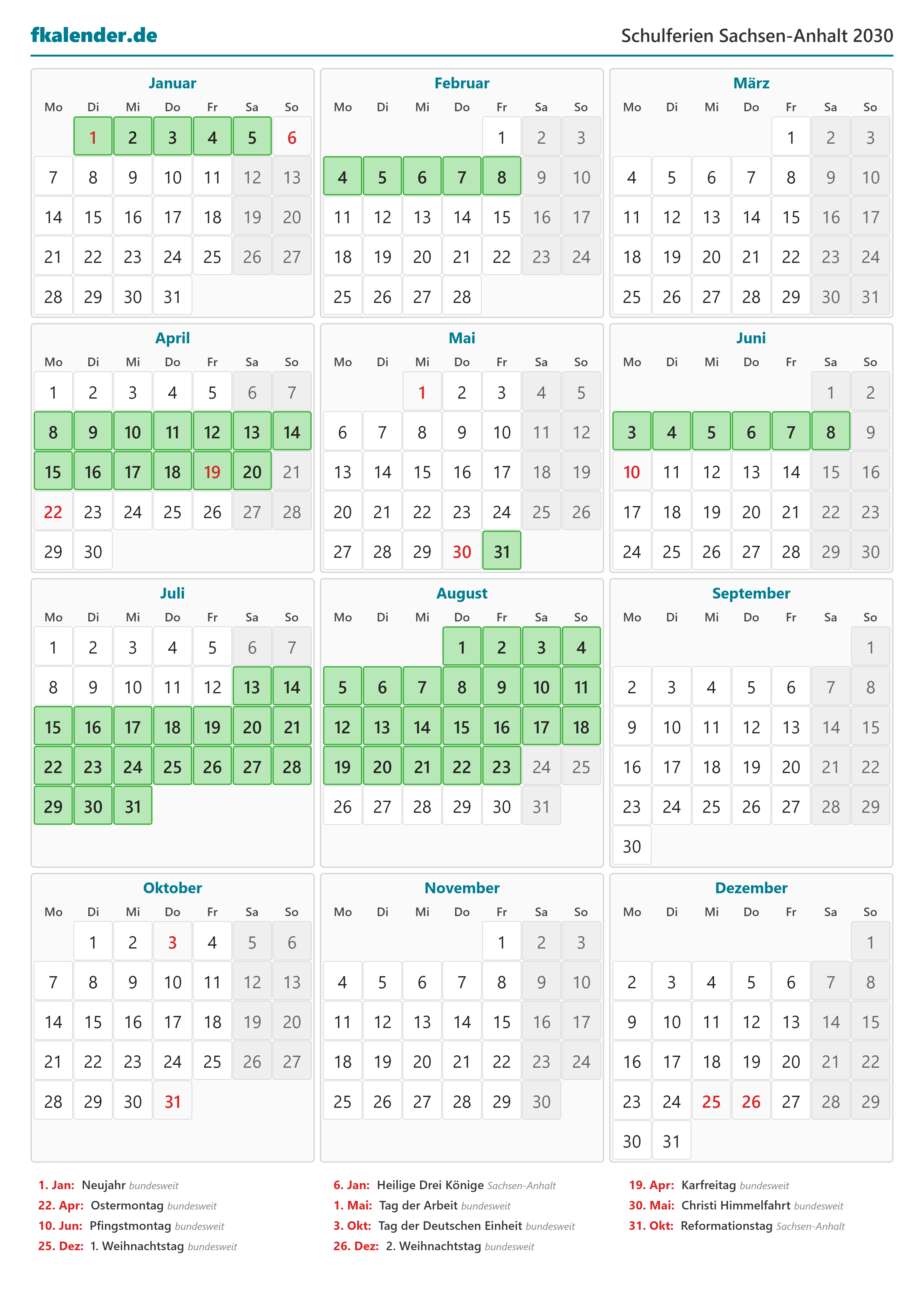 Ferienkalender Sachsen-Anhalt 2030 herunterladen