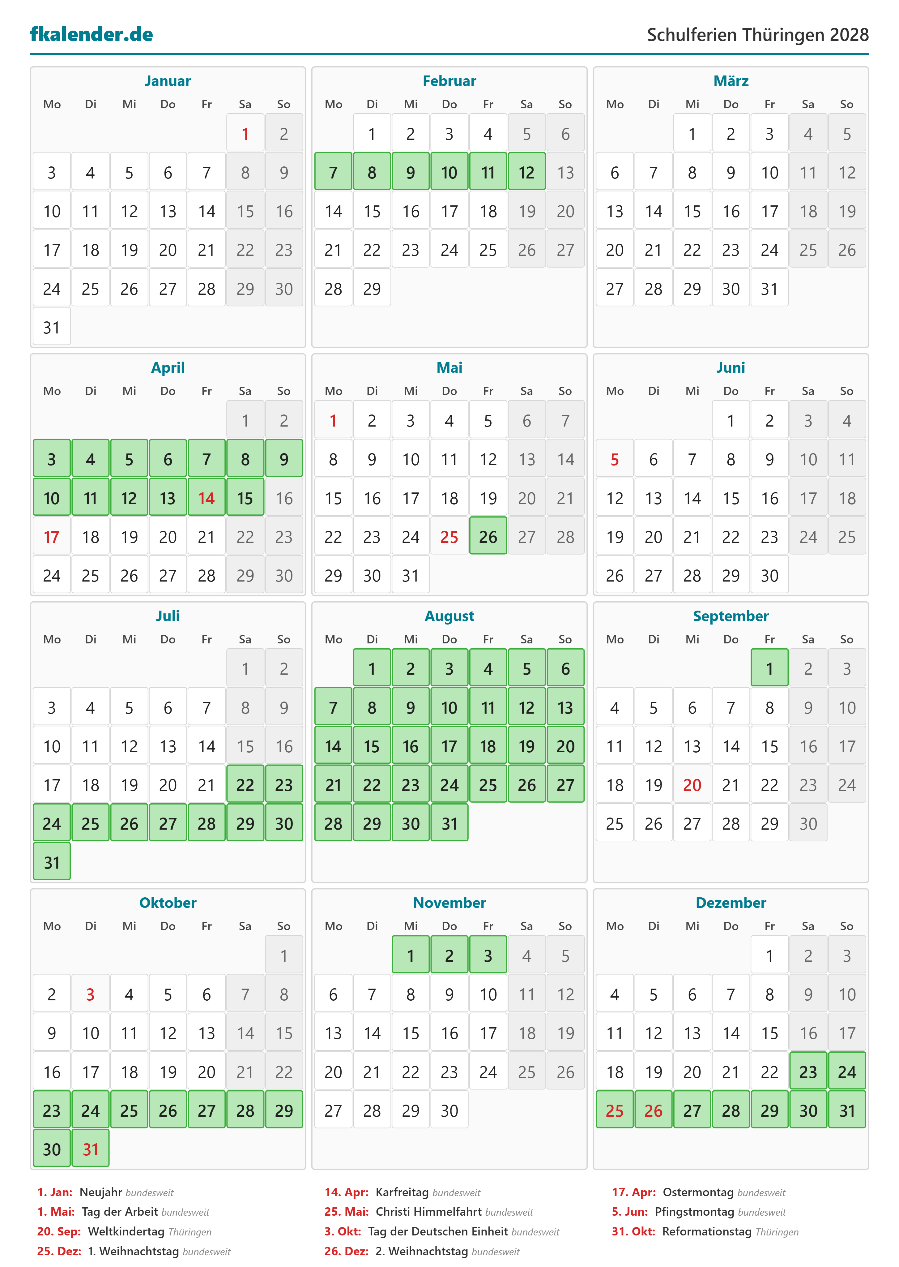 Teilen Sie Ihre Meinung oder Fragen zum Ferienkalender Thüringen 2028